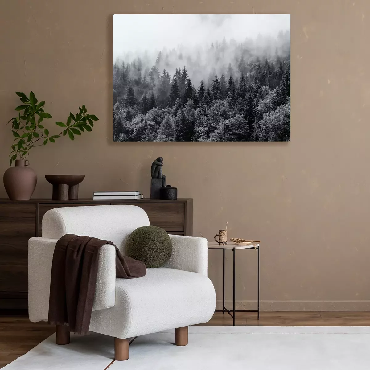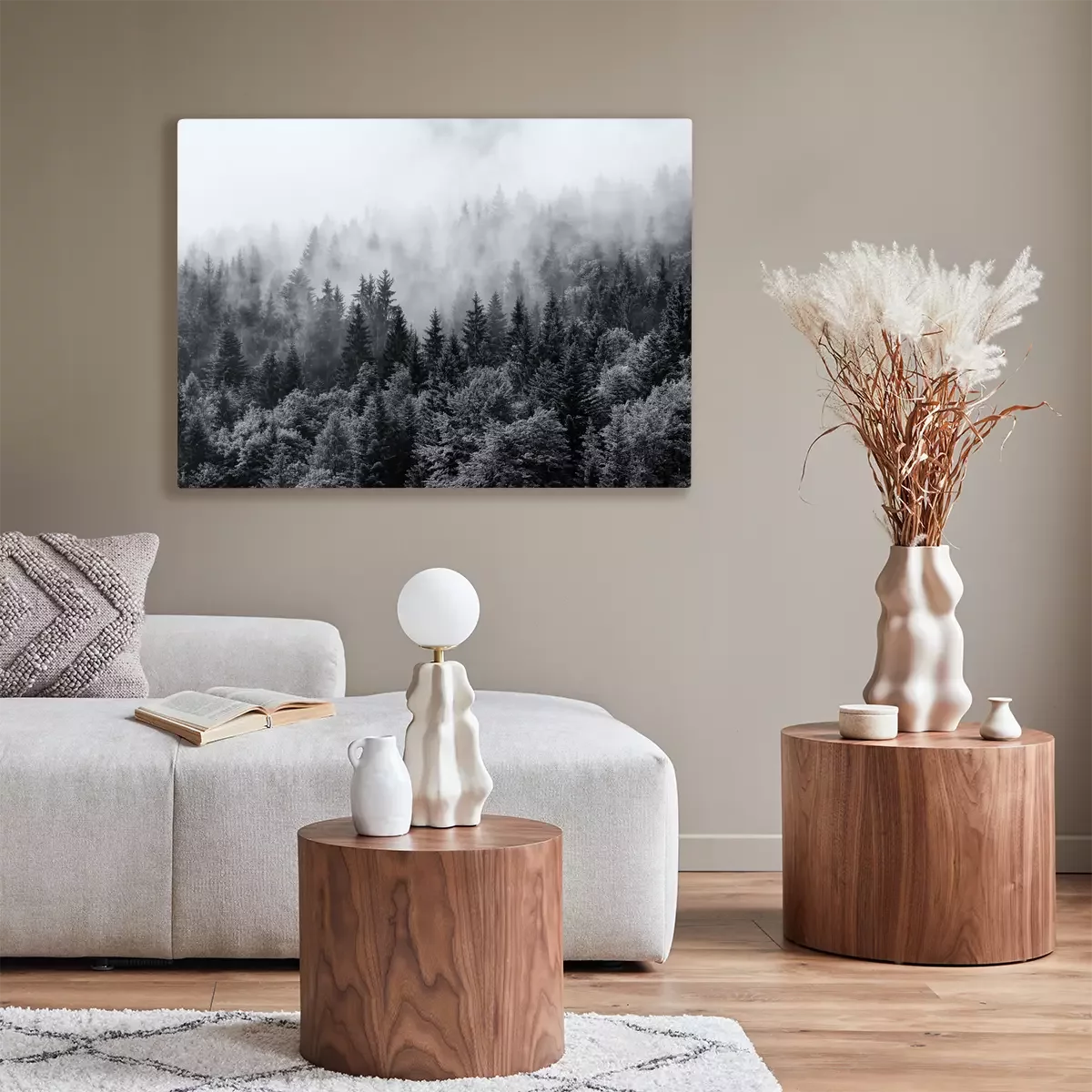 Tableau : Arbres noirs et blancs dans la forêt