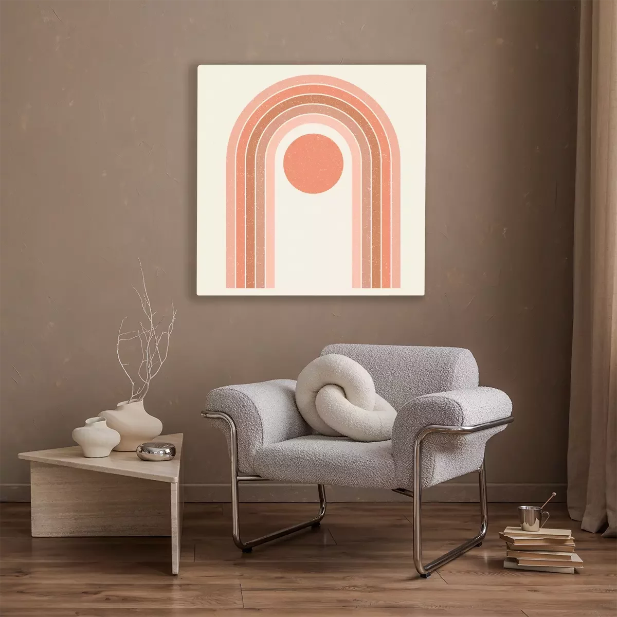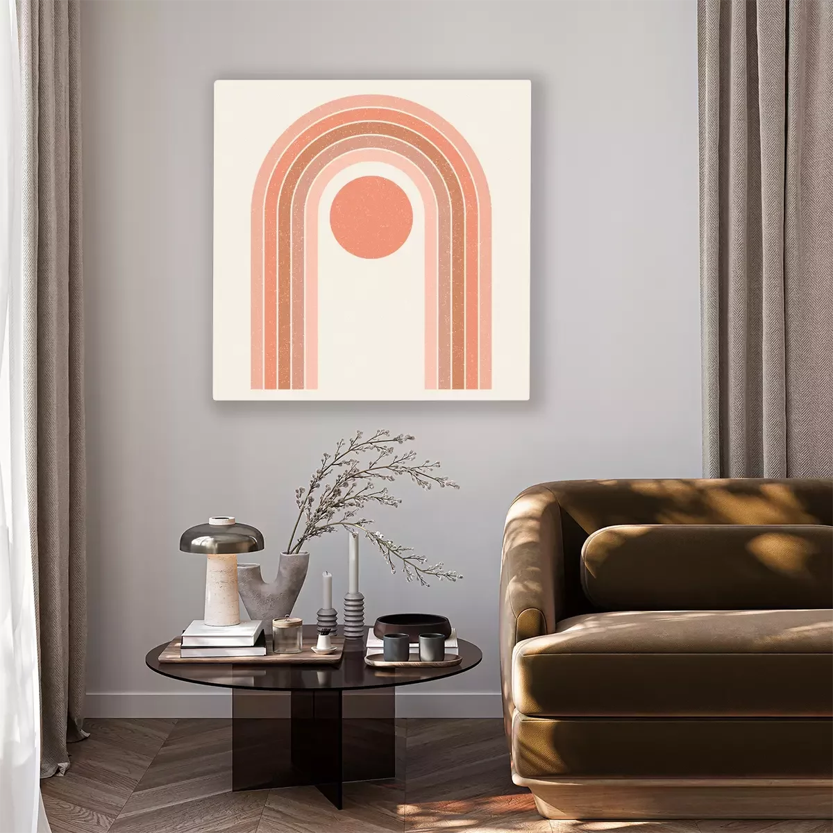 Abstract contemporary aesthetic background with geometric balance shapes, rainbow gates. Boho wall decor. Mid century modern minimalist print. Neutral Geometric art. Organic shape.
