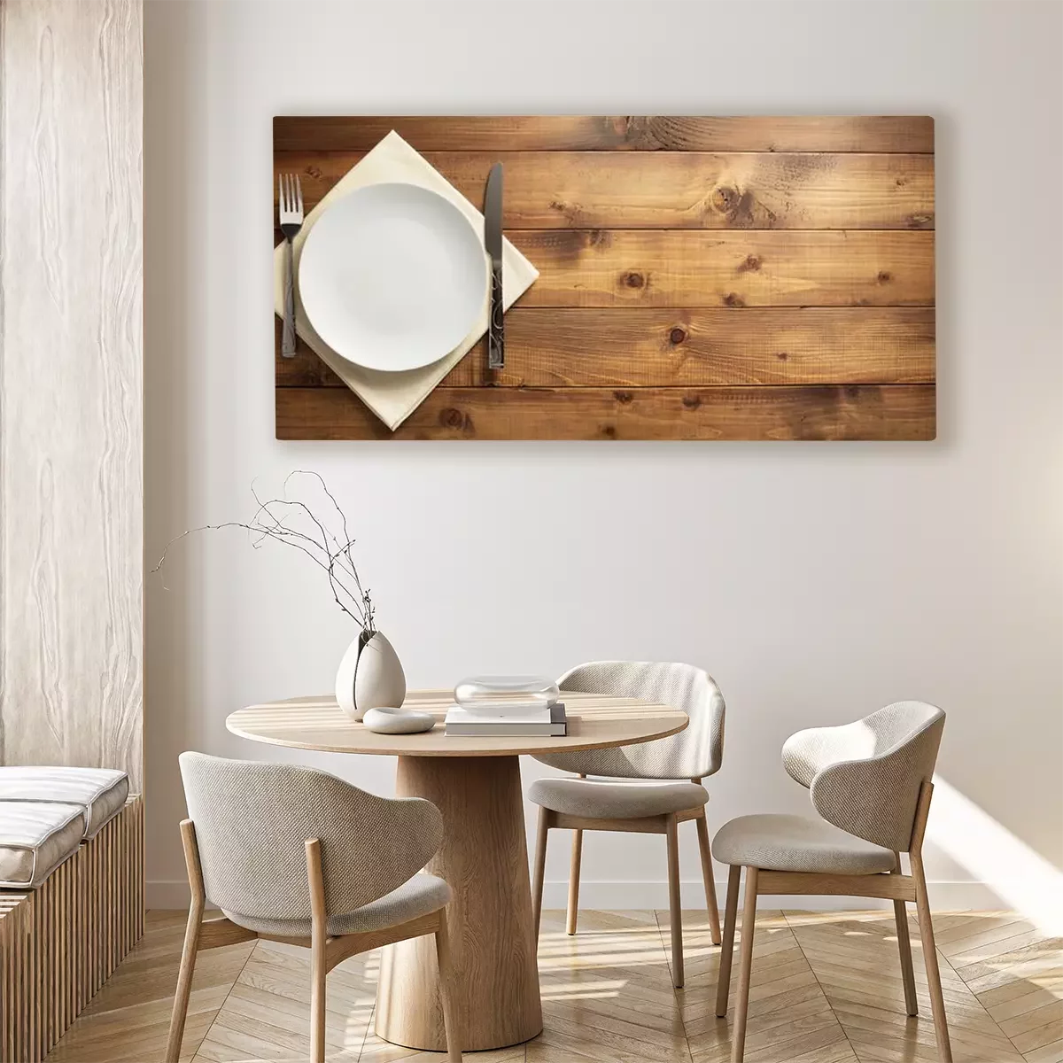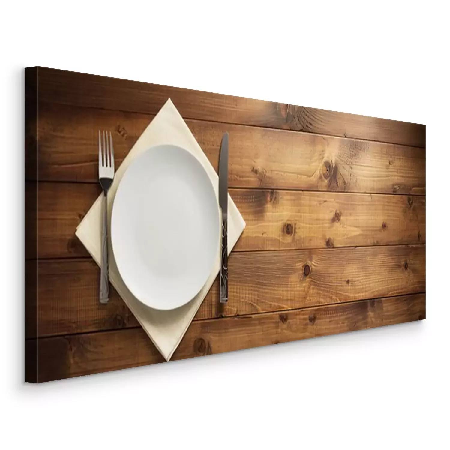 Tableau : assiette, couteau et fourchette sur une serviette en papier