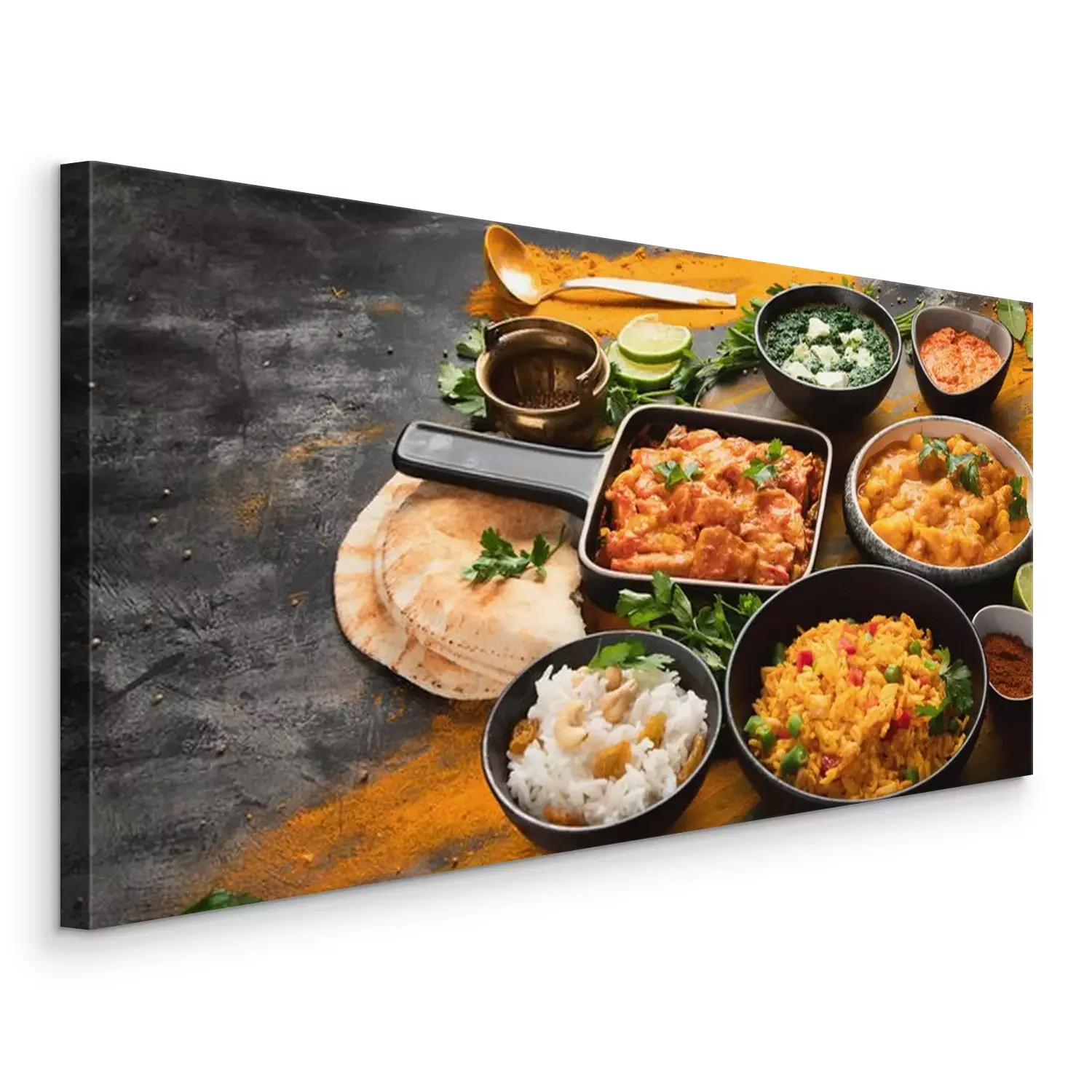 Tableau : Assorted indian food on black background..
