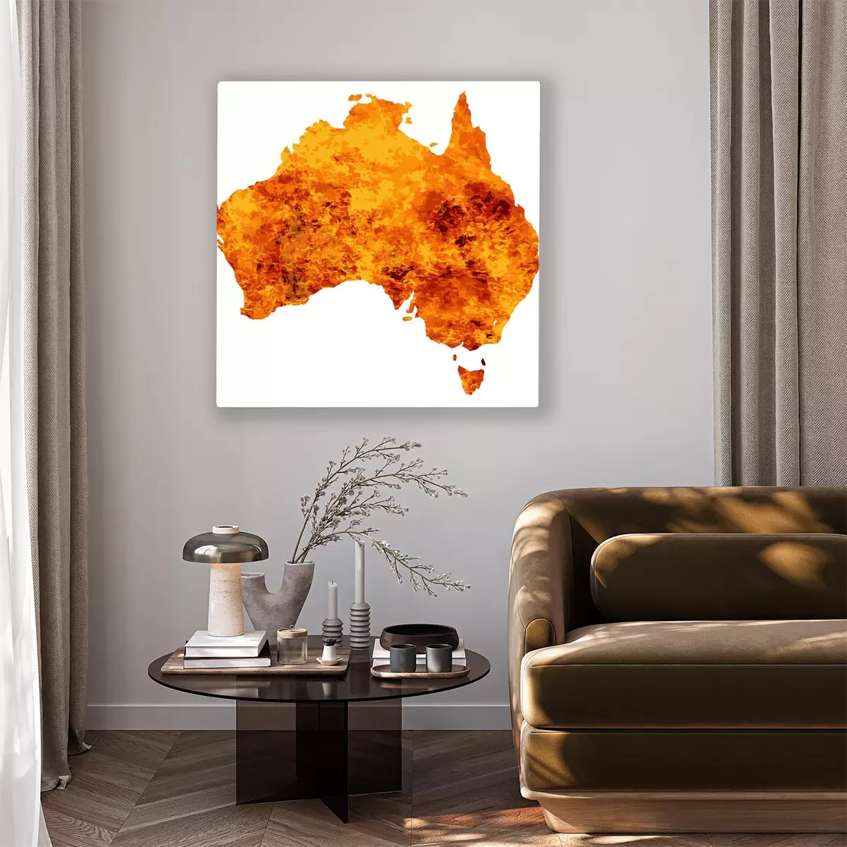 Tableau  Australie, carte, flammes, fond