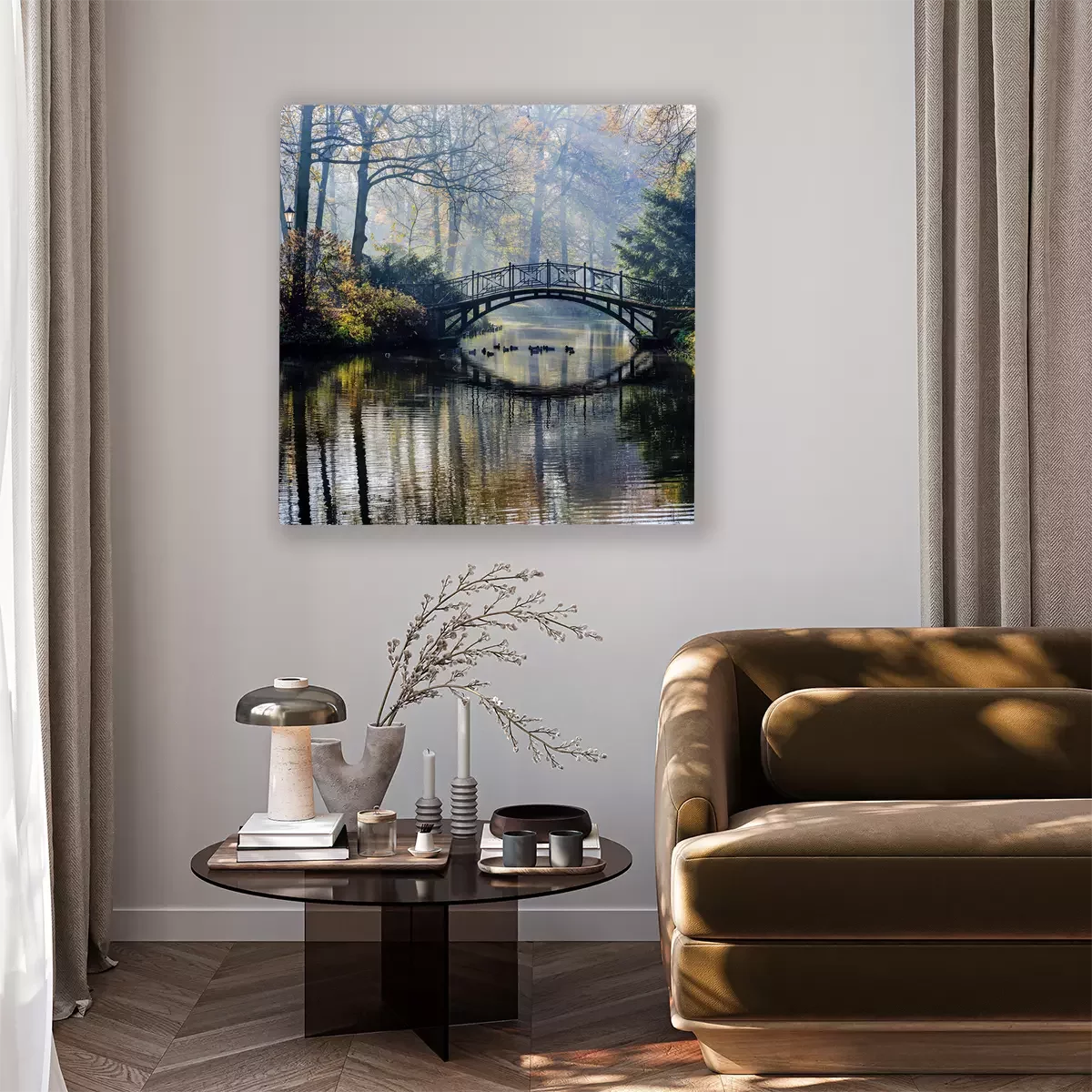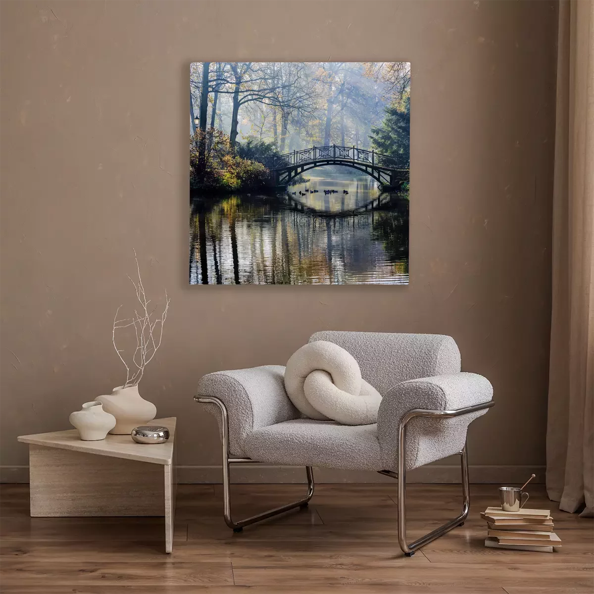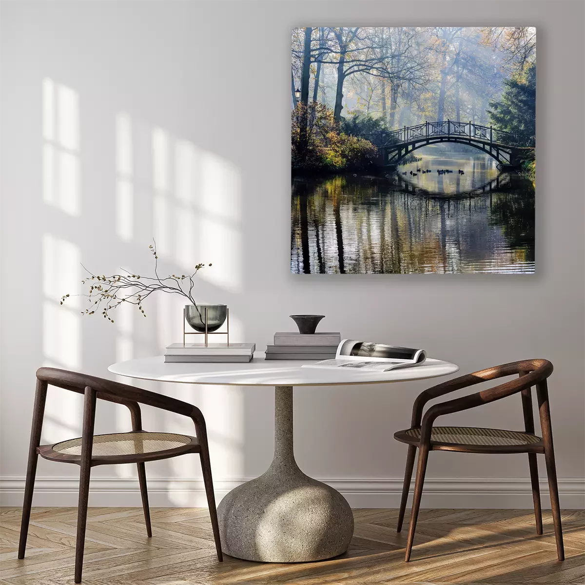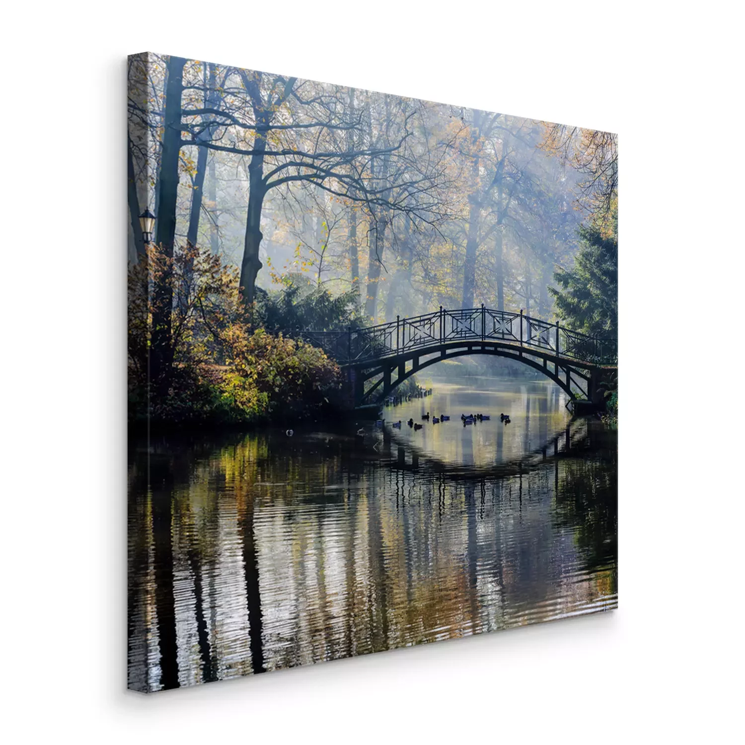 Tableau  Automne - Vieux pont dans le parc brumeux automne