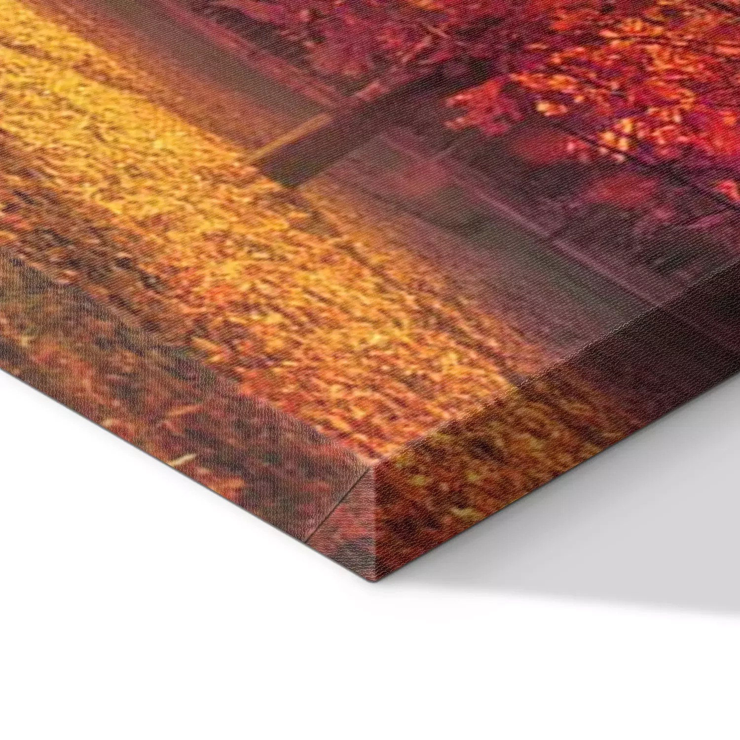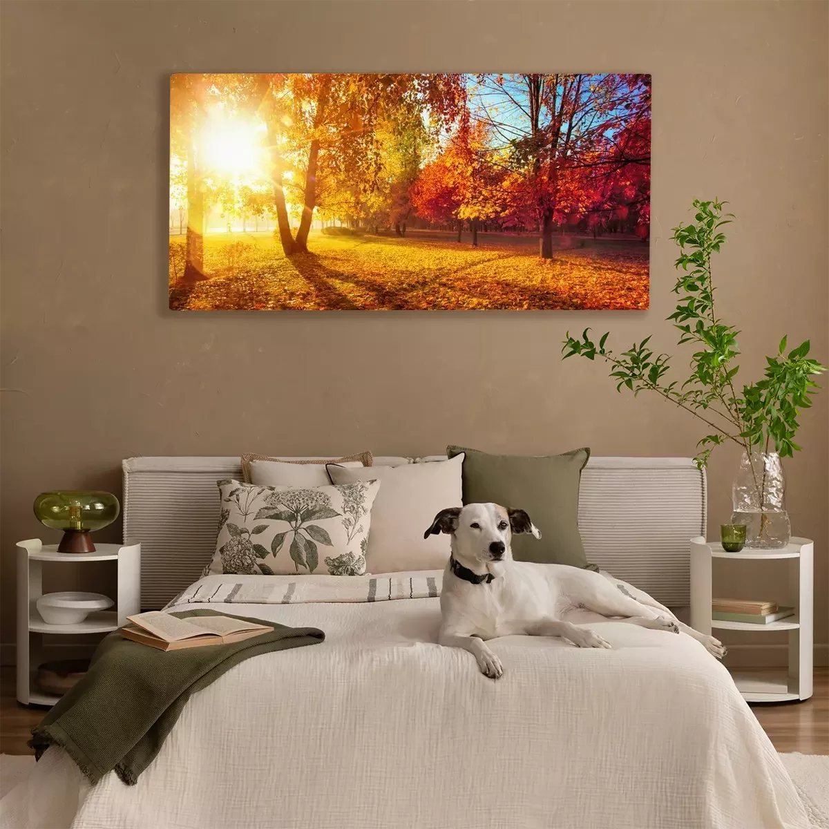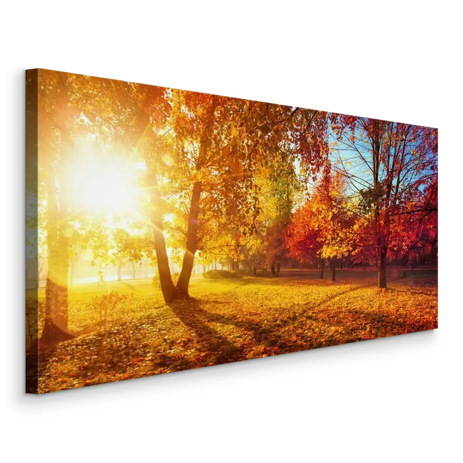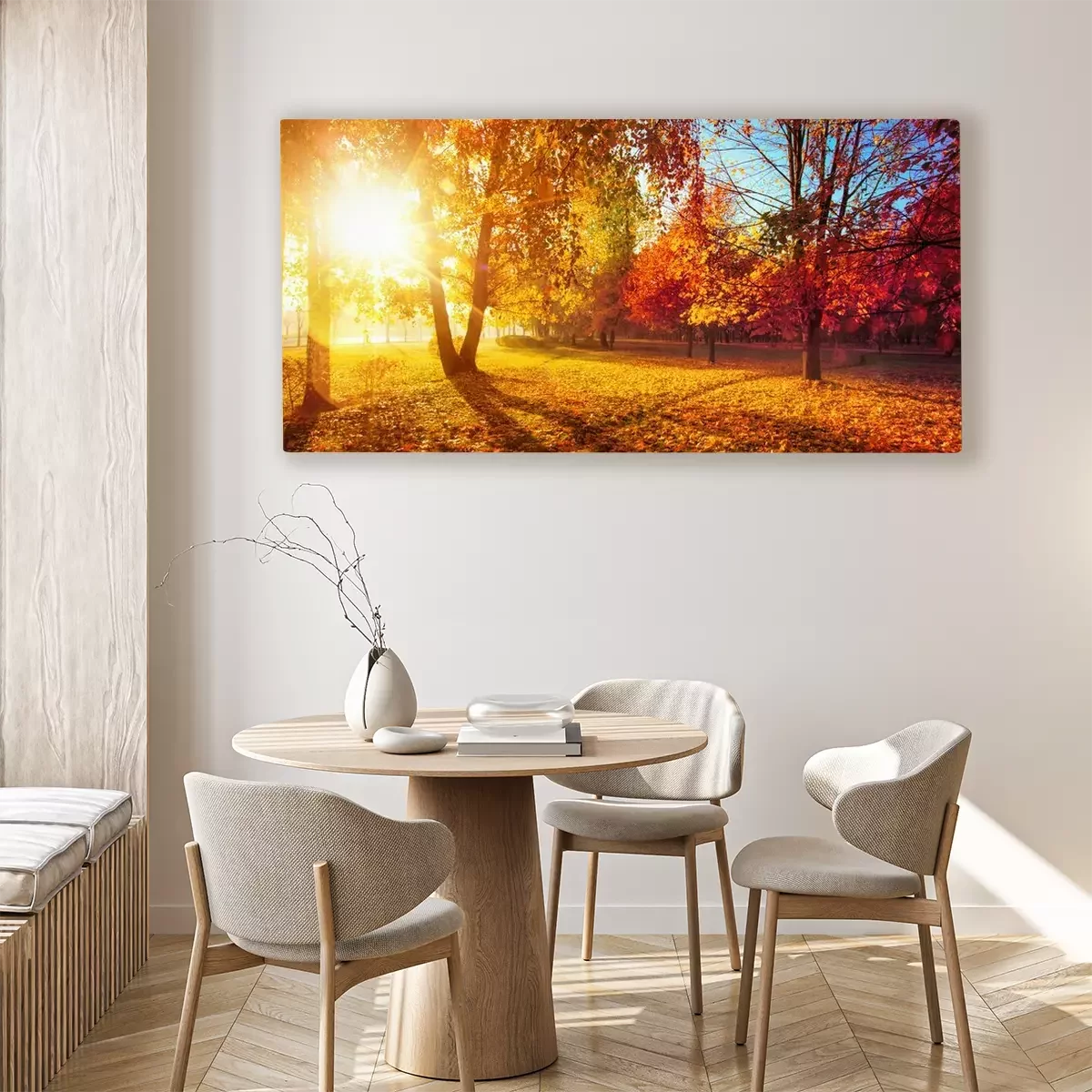 Tableau  Autumn Landscape. Fall Scene.Trees and Leaves in Sunlight Rays