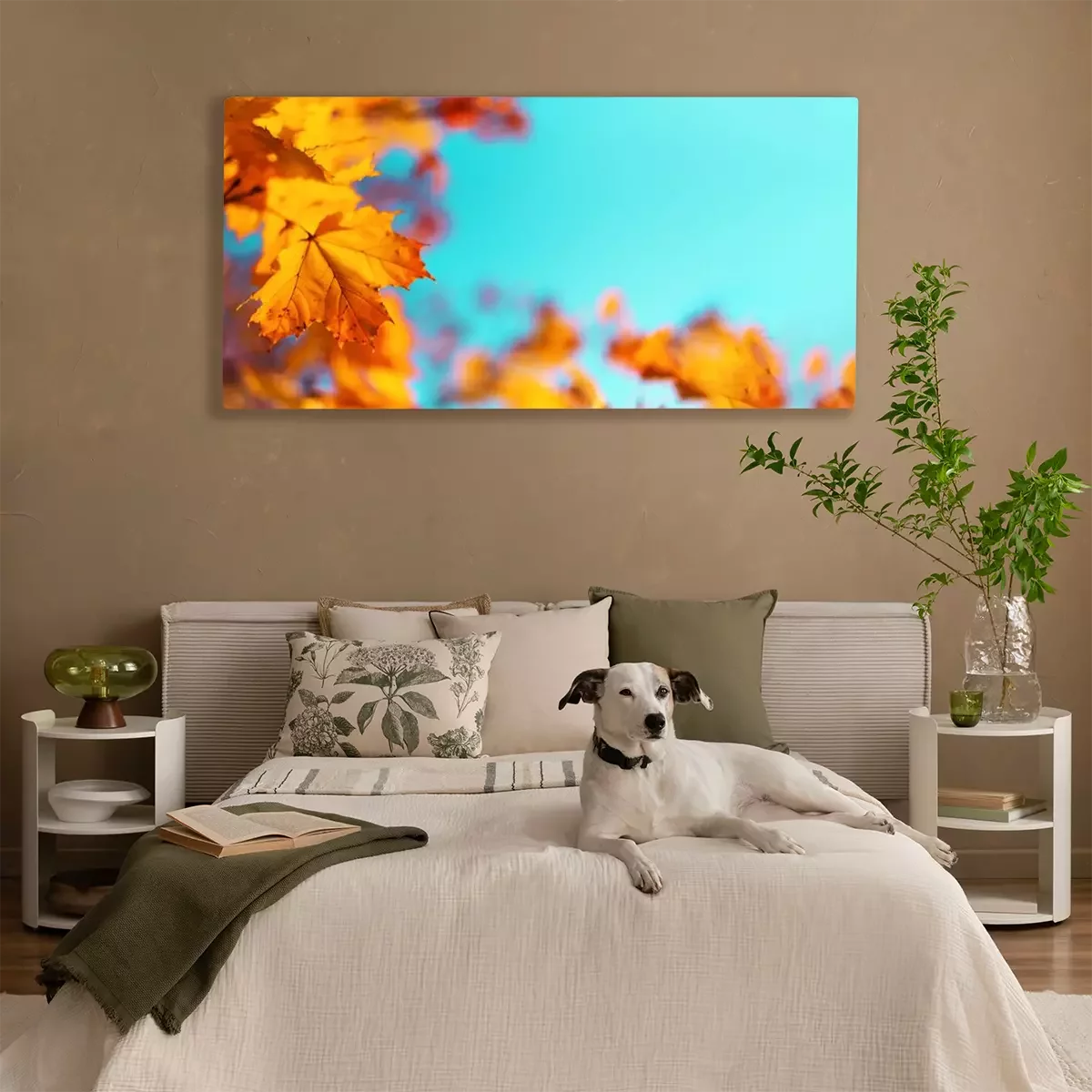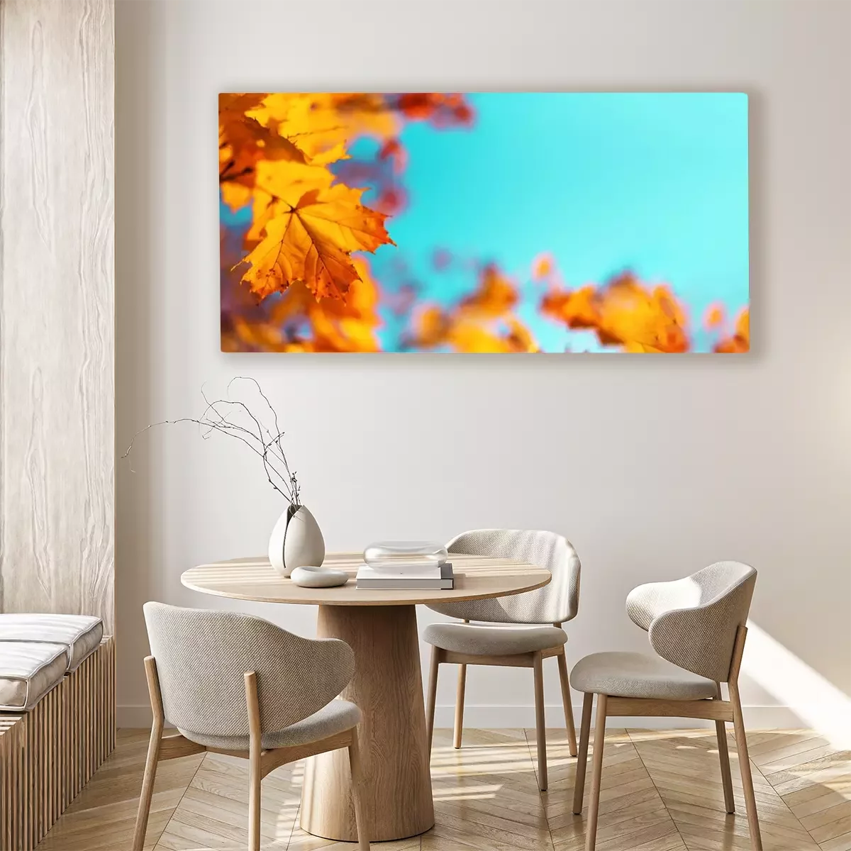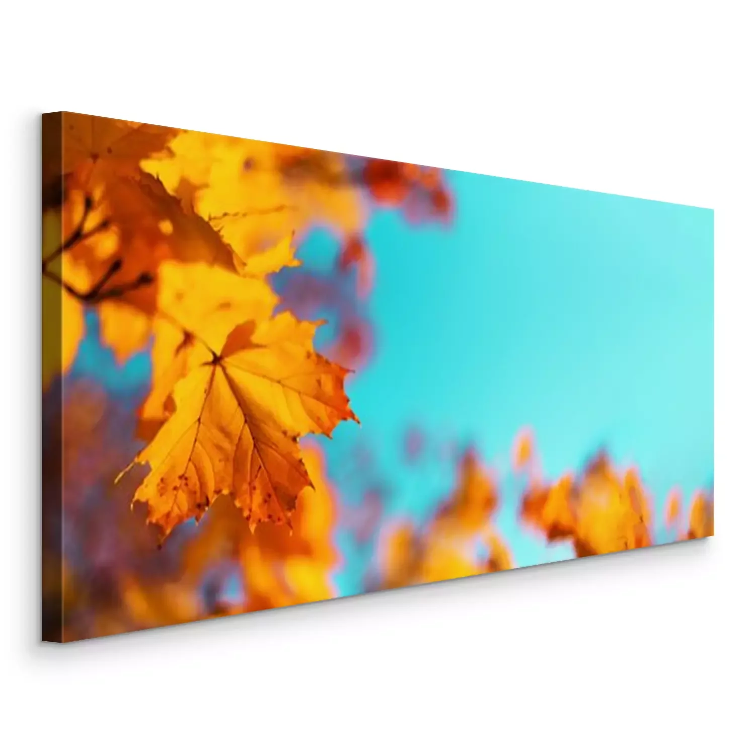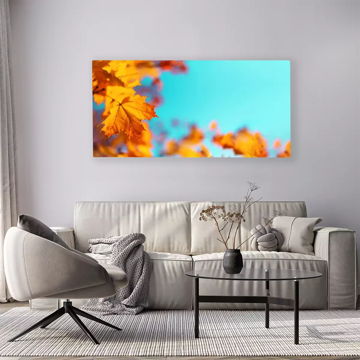 Tableau  Autumn yellow leaves on blue sky background. Golden autumn concept. Sunny day, warm weather.