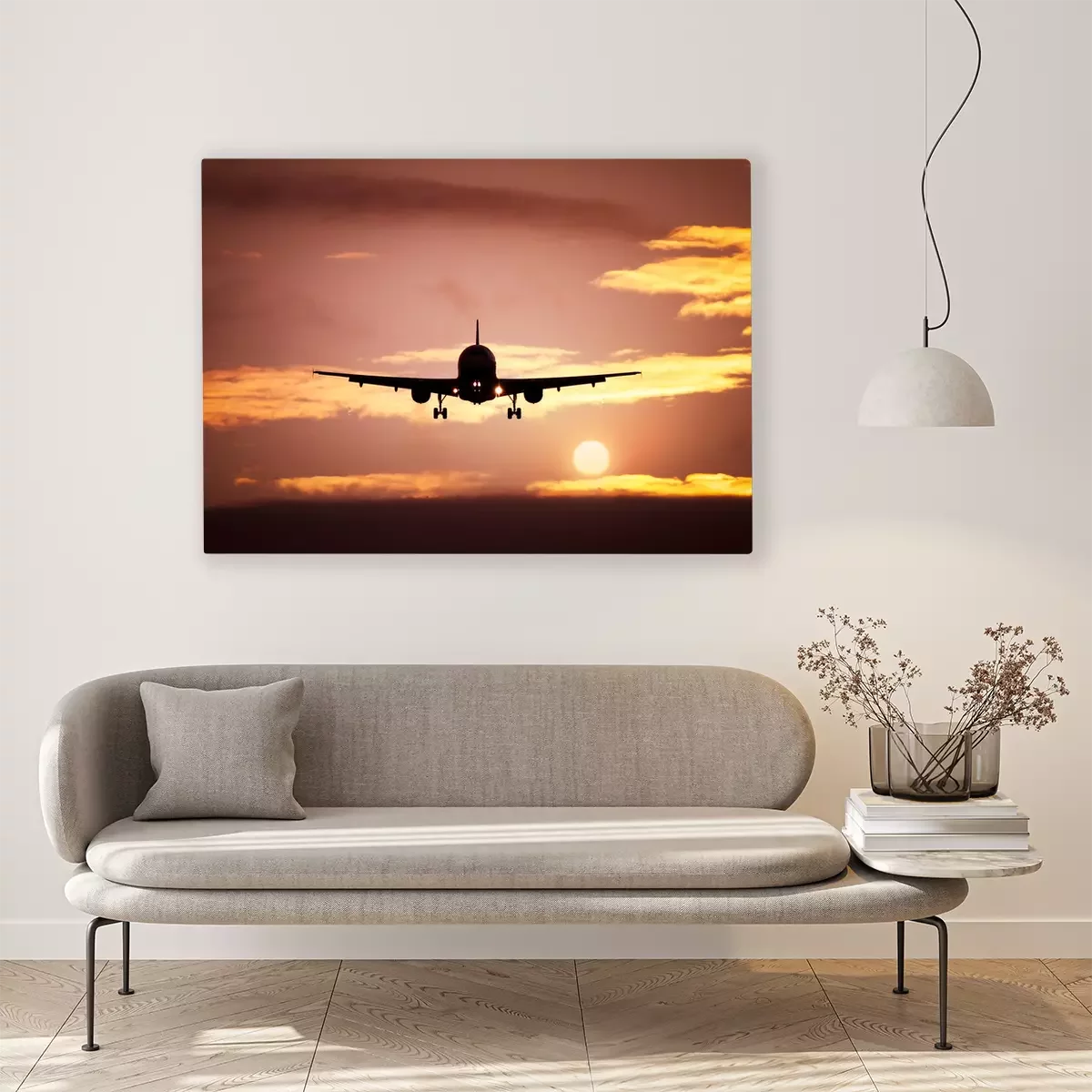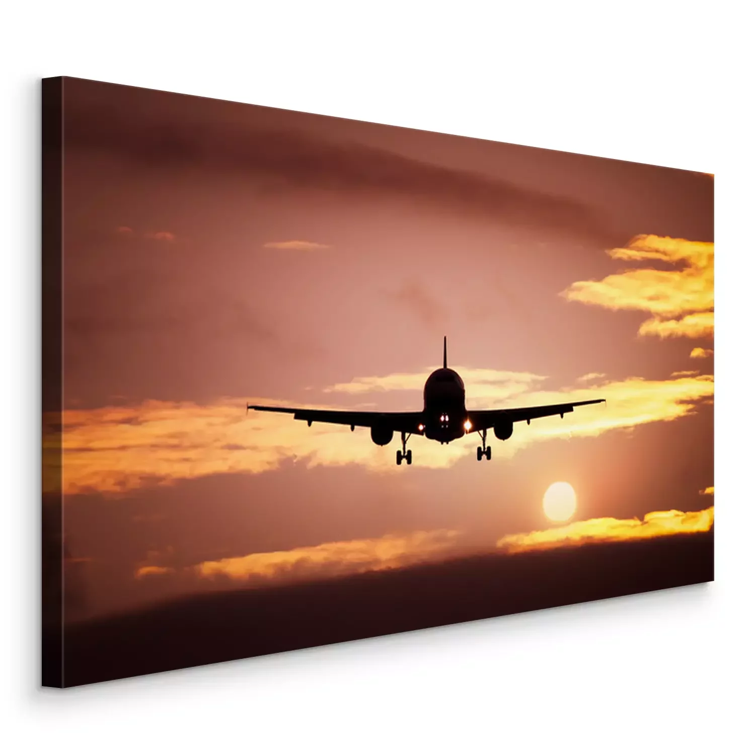 Tableau  avion dans le ciel le coucher du soleil