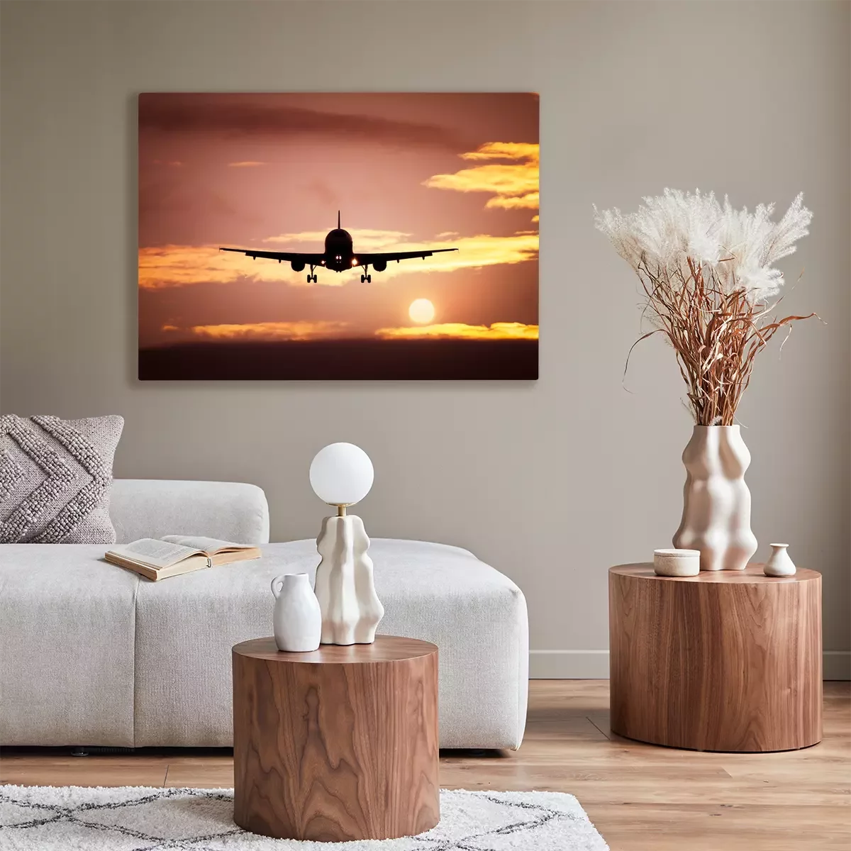 Tableau : avion dans le ciel le coucher du soleil