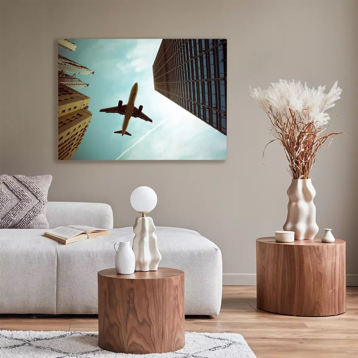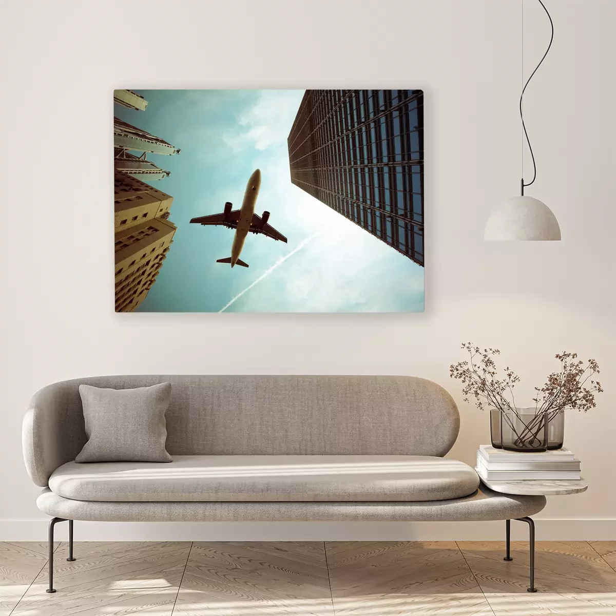 Tableau  Avion dans une ville moderniste