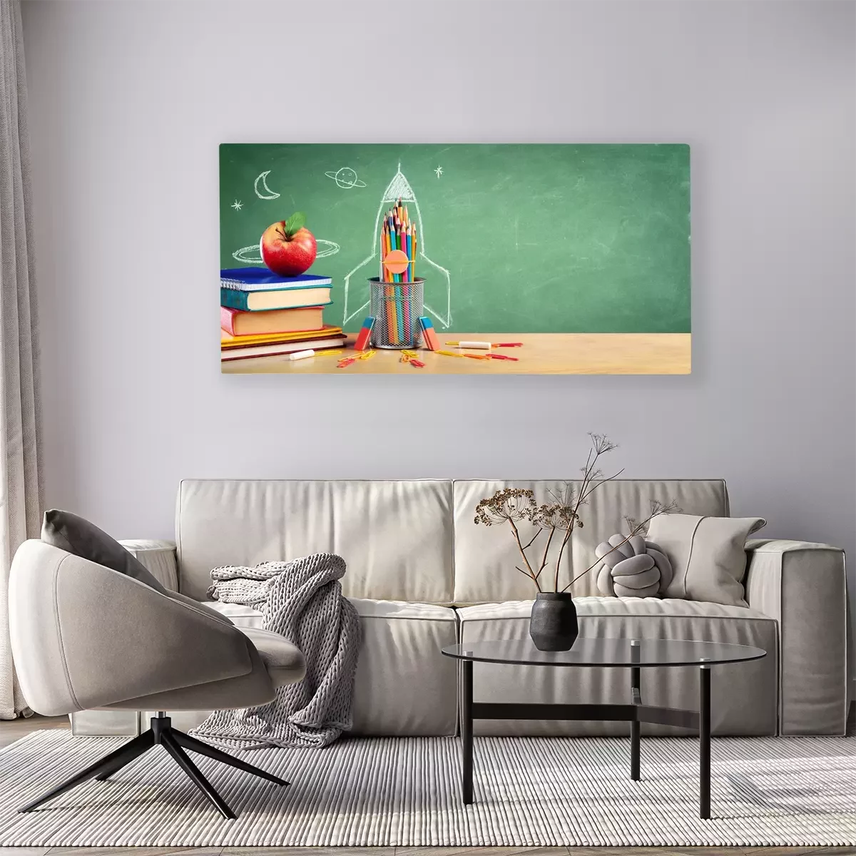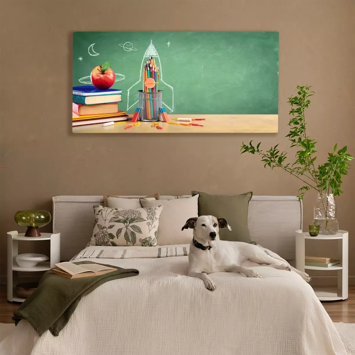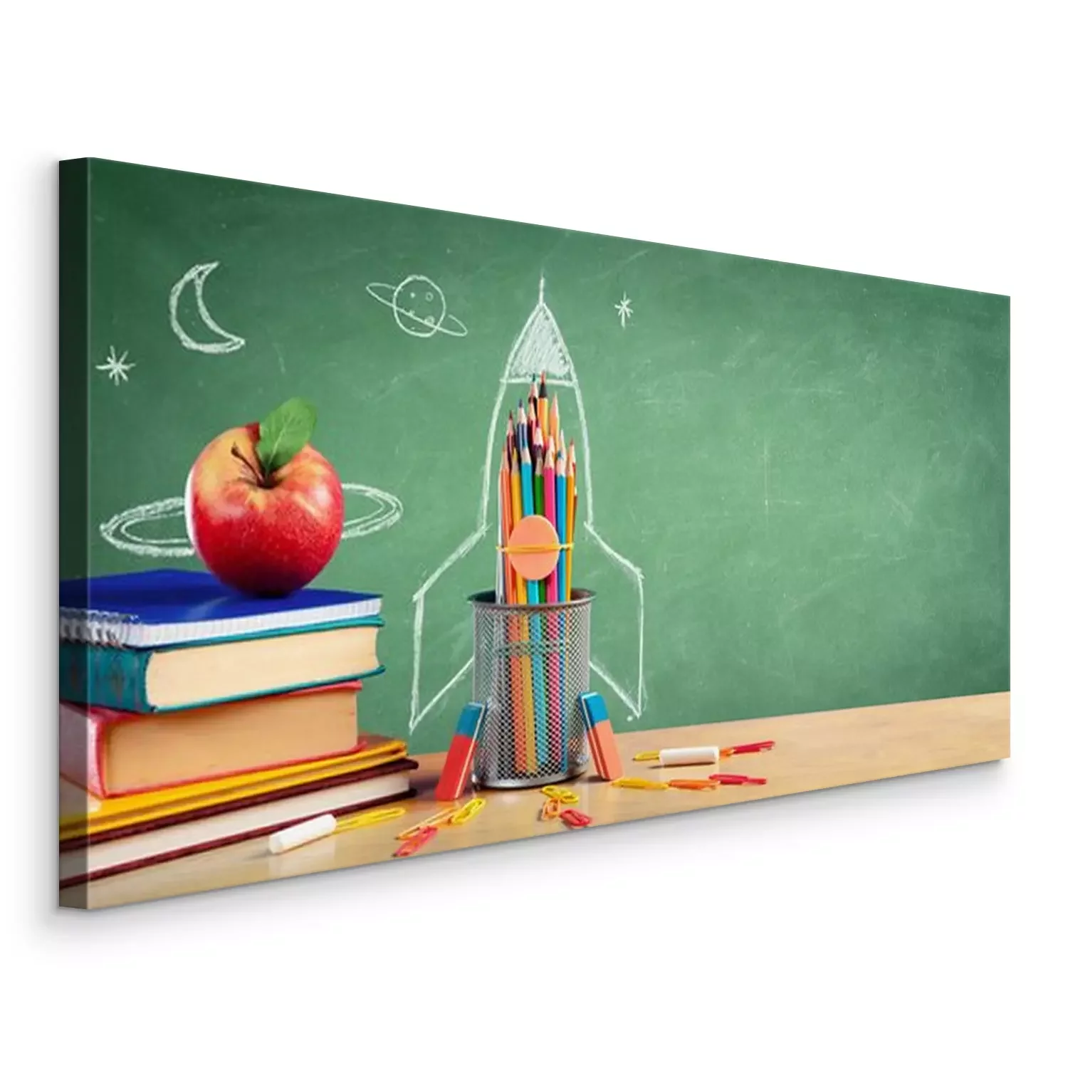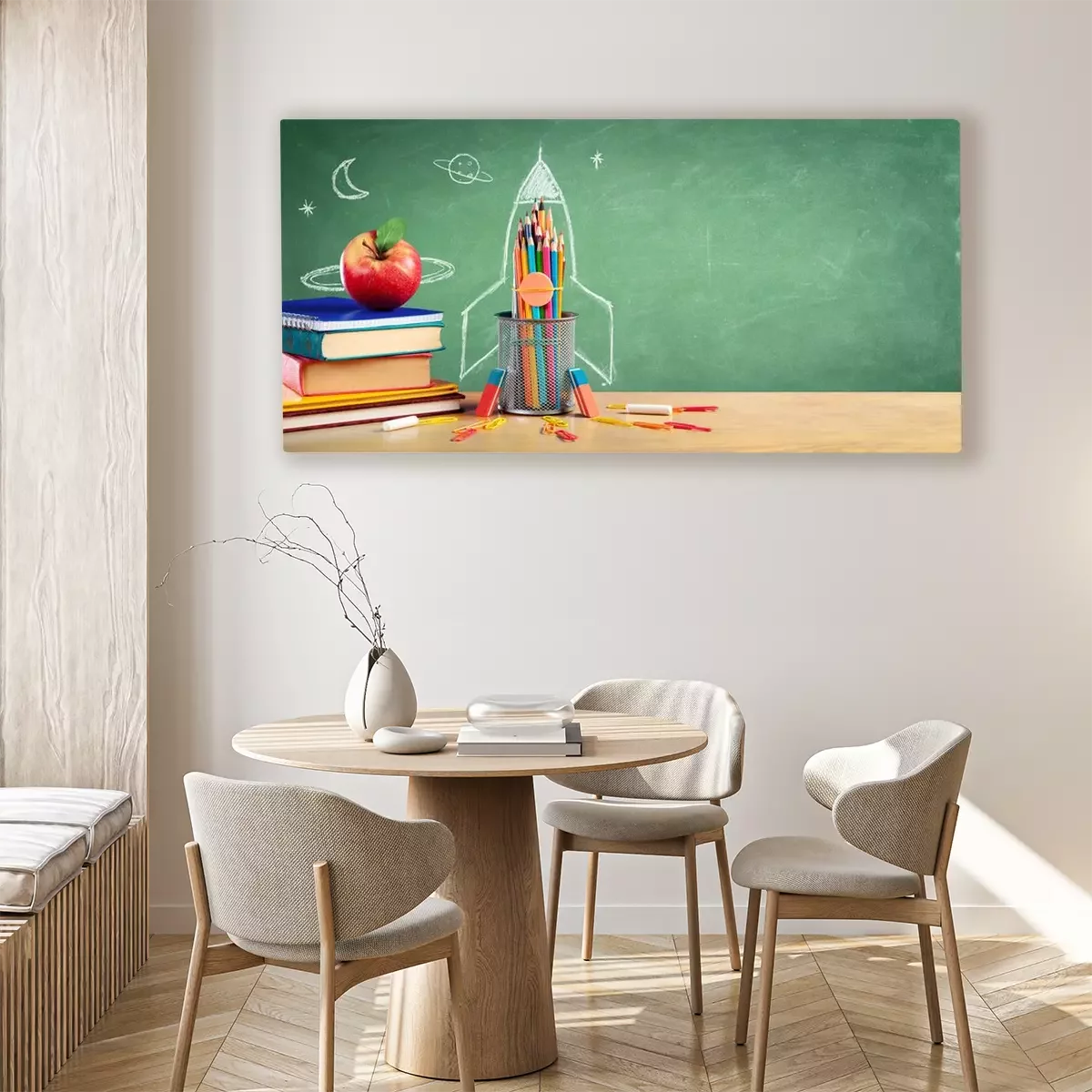Tableau  Back To School - Books And Pencils With Rocket Sketch