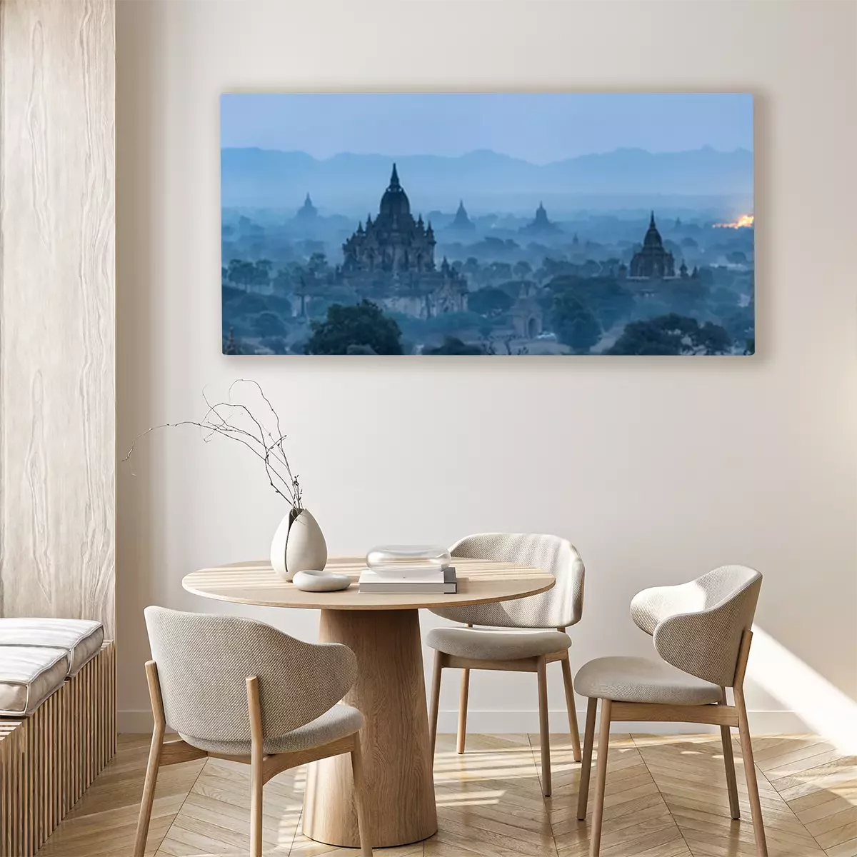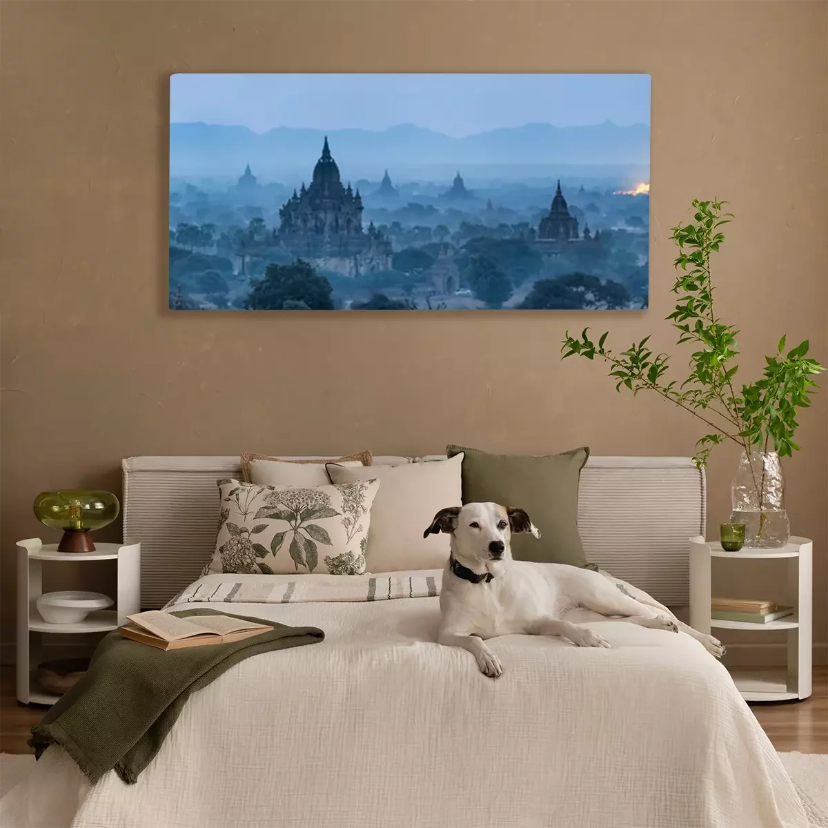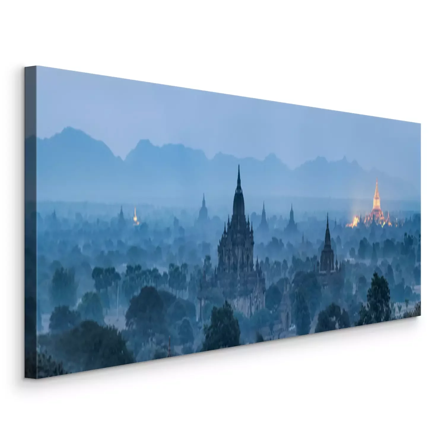 Tableau  Bagan panorama at night with golden Shwezigon pagoda, Myanmar