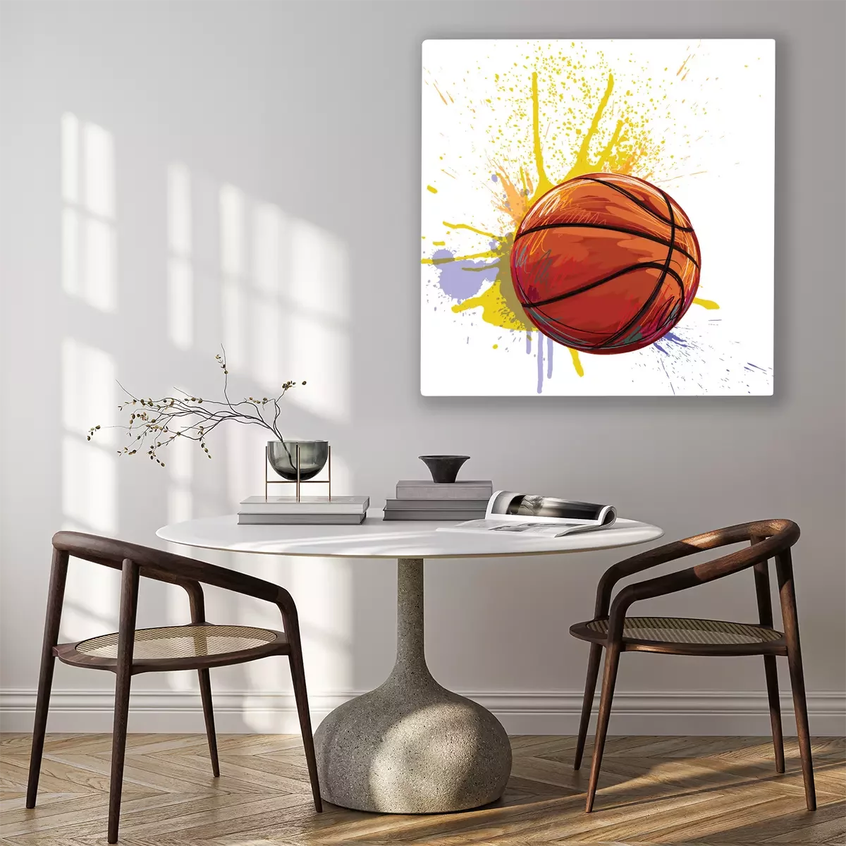 Basketball sur fond de peinture