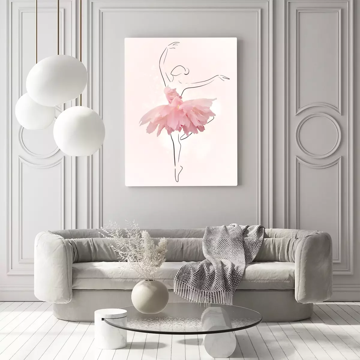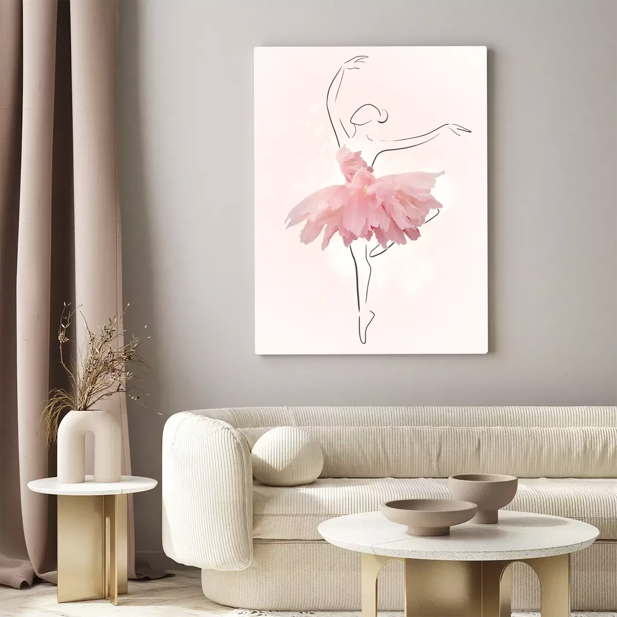 Ballerine vêtue d'une tenue florale rose de style linéaire