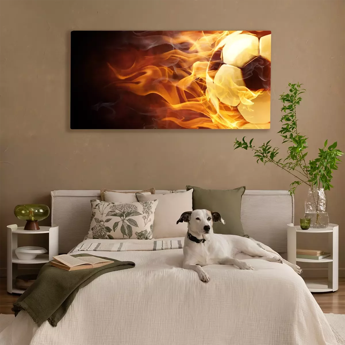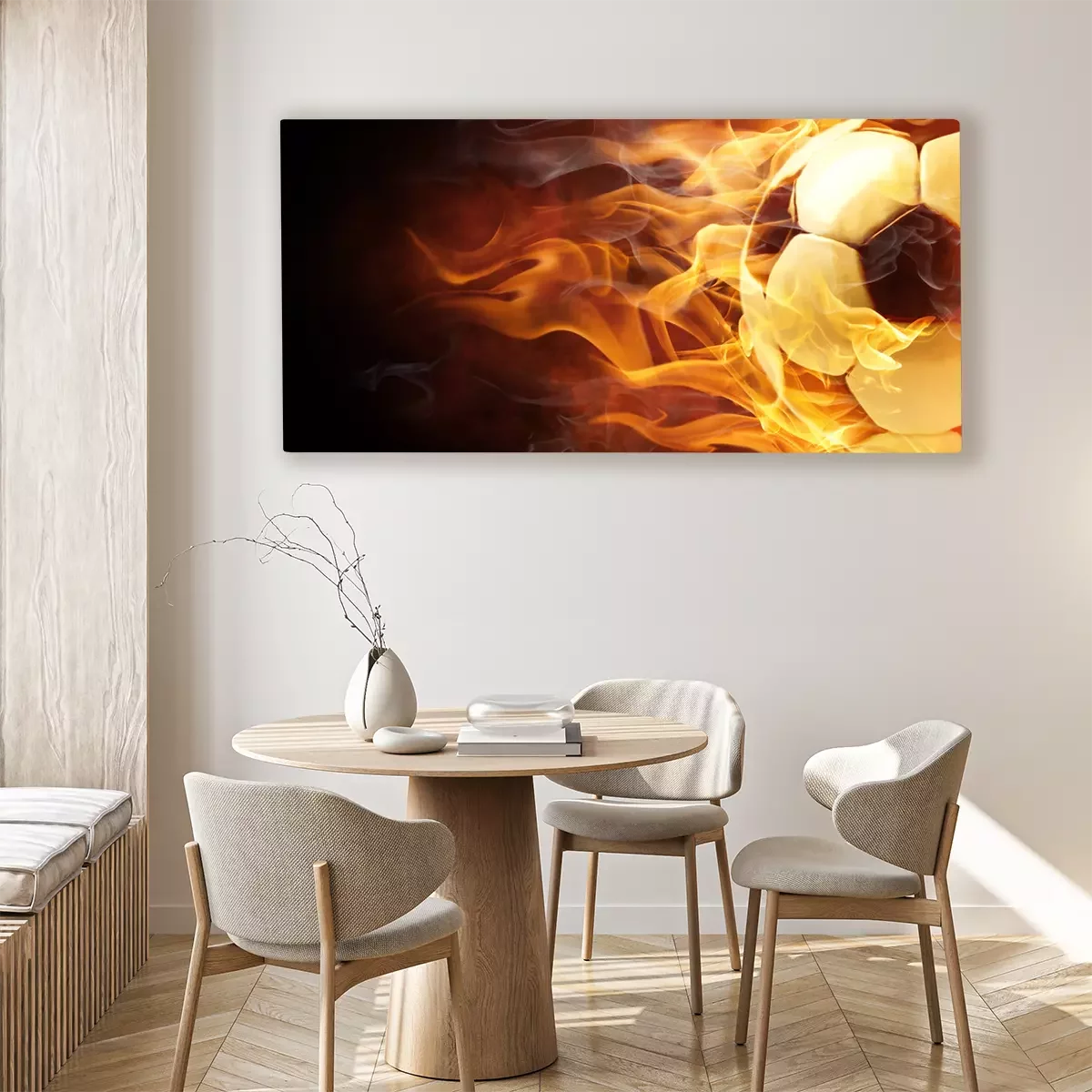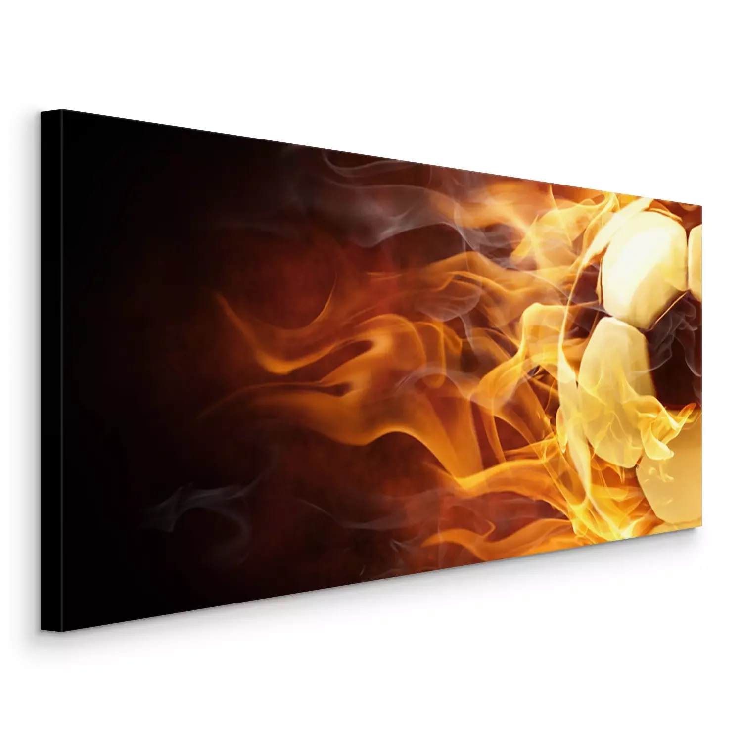 Tableau : Ballon de football noir et blanc en flammes