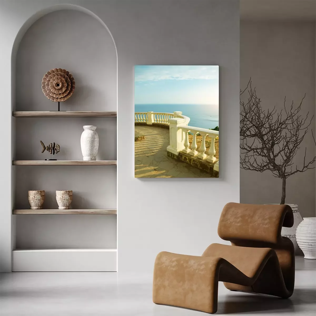 Tableau : Balustrade blanche au-dessus de l'océan