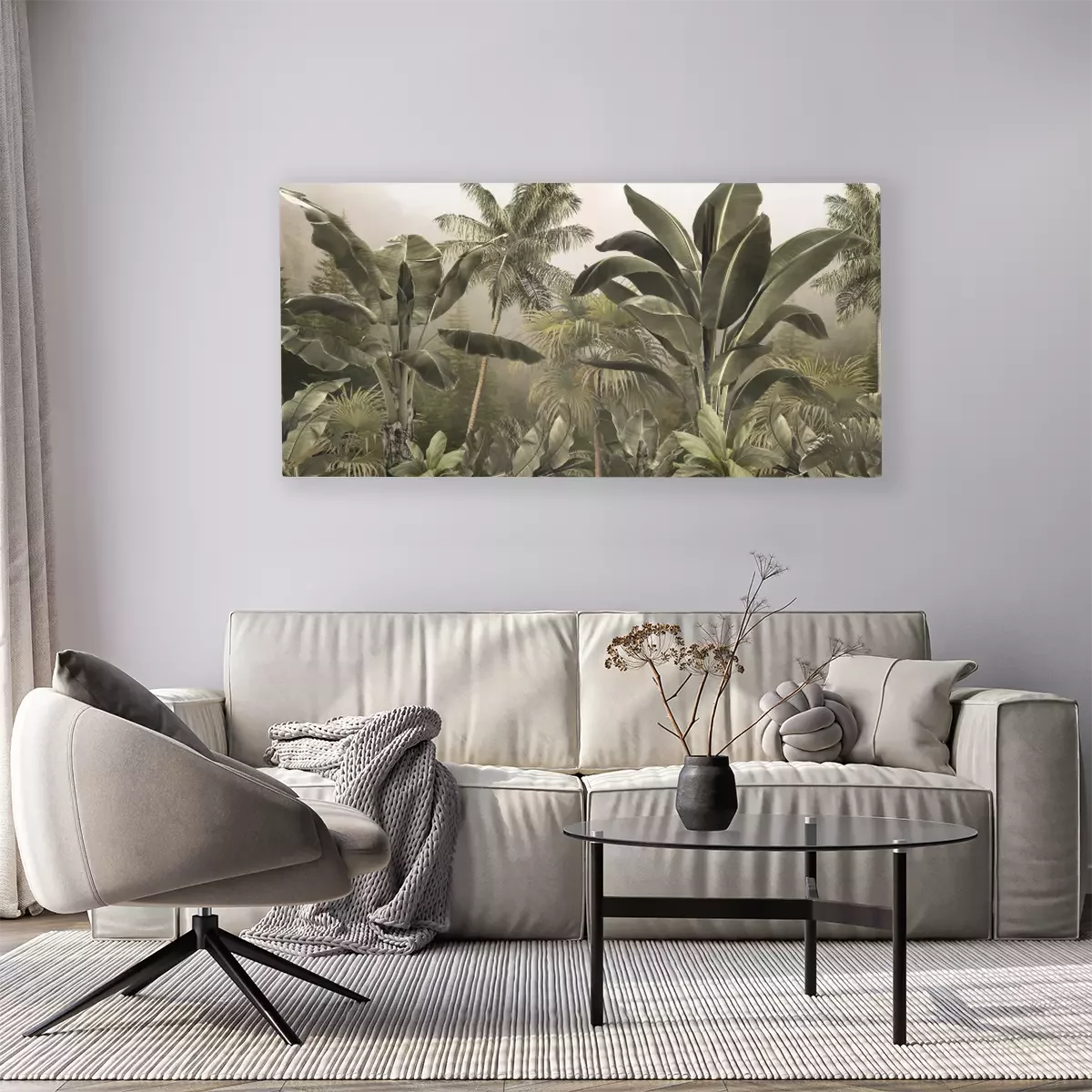 Tableau : Bananier et palmiers tropicaux