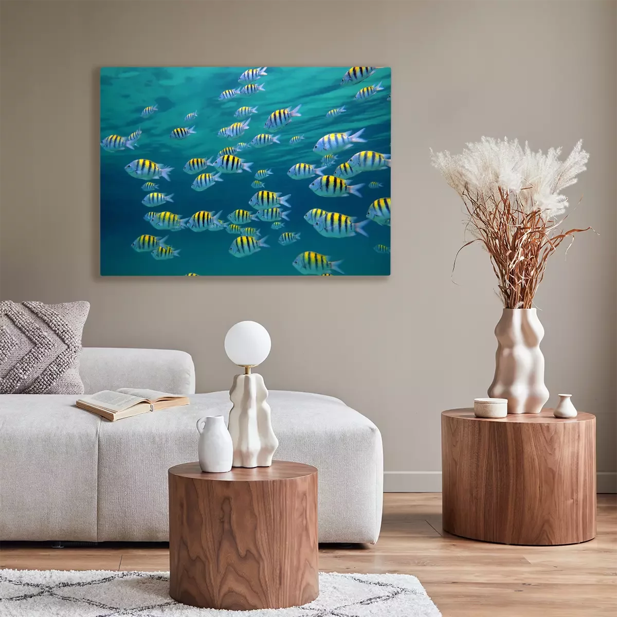Tableau : Banc de poissons dans l'océan