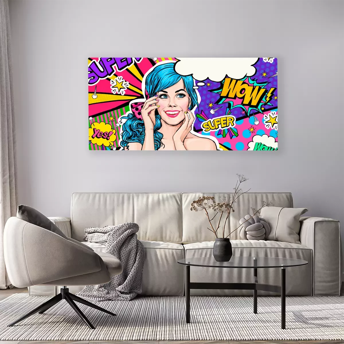 Tableau  Bande dessinée et femme heureuse