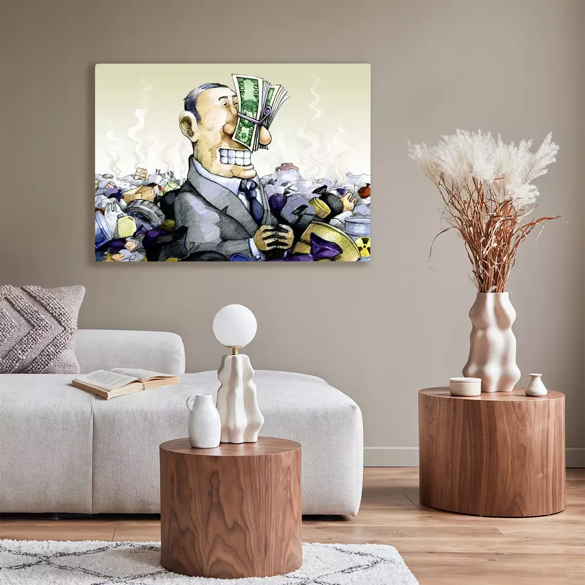 Tableau  Bande dessinée et un homme se noyant dans les ordures