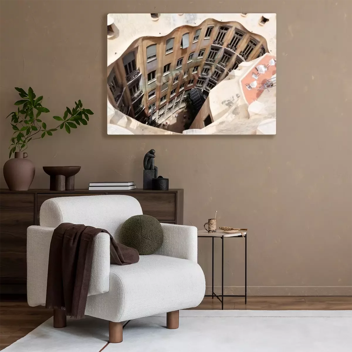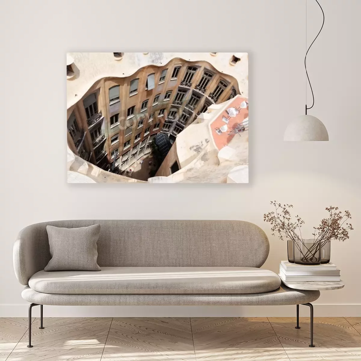 Tableau  BARCELONA - JULY 18: Abstract chimey of Casa Mila (La Pedrera) on JULY 18, 2011 in Barcelona, Spain. La Pedrera was built in 1906-1910 by the most famous catalan architect Anthoni Gaudi.