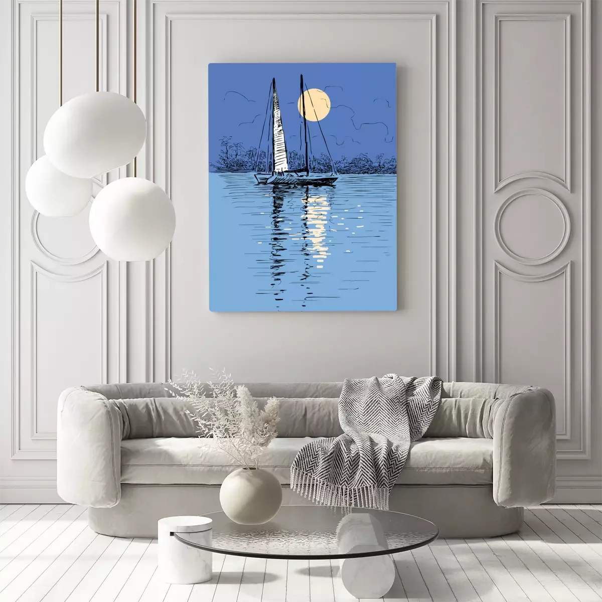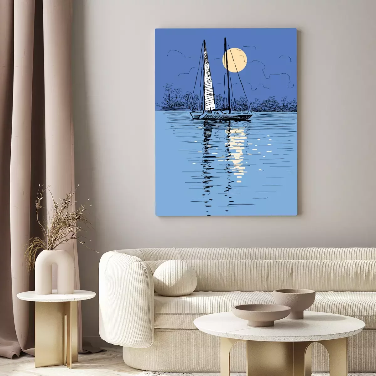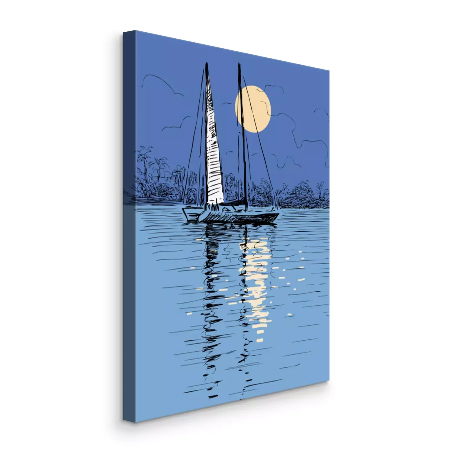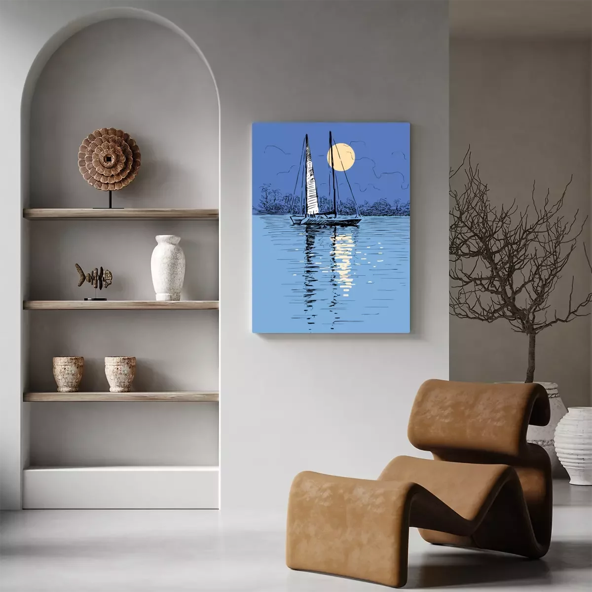 Tableau  Bateau à voile dans la nuit au clair de lune