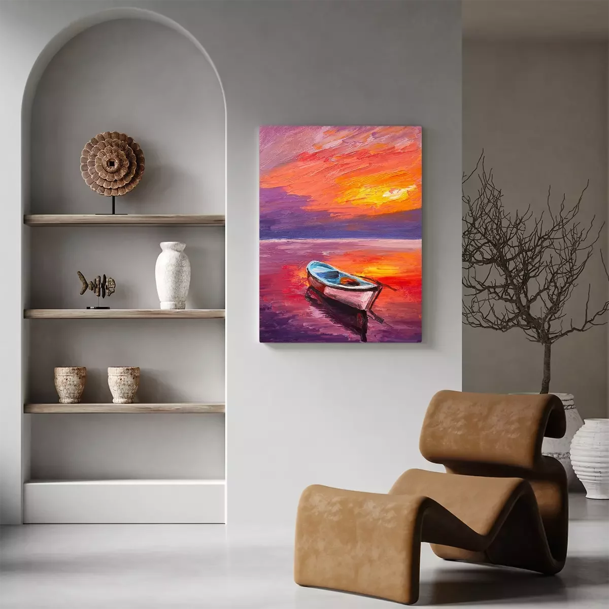 Tableau : Bateau en bois sur la côte