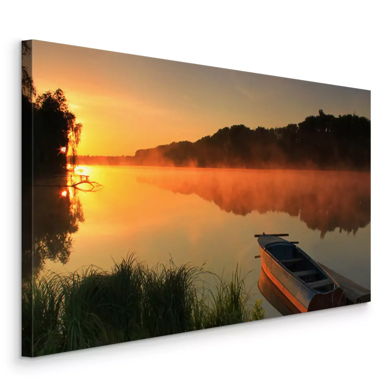 Tableau  Bateau sur le rivage d'un lac brumeux