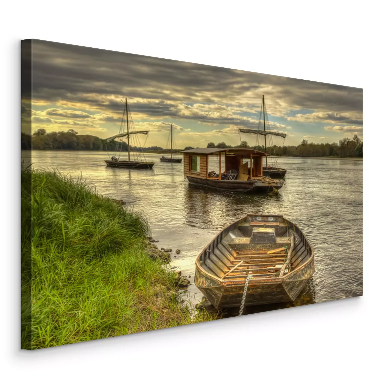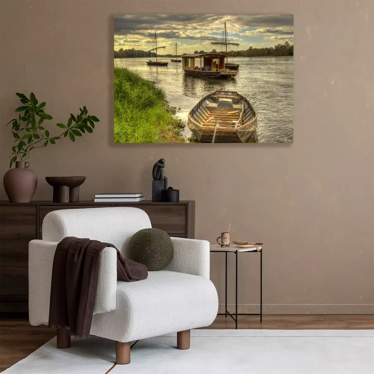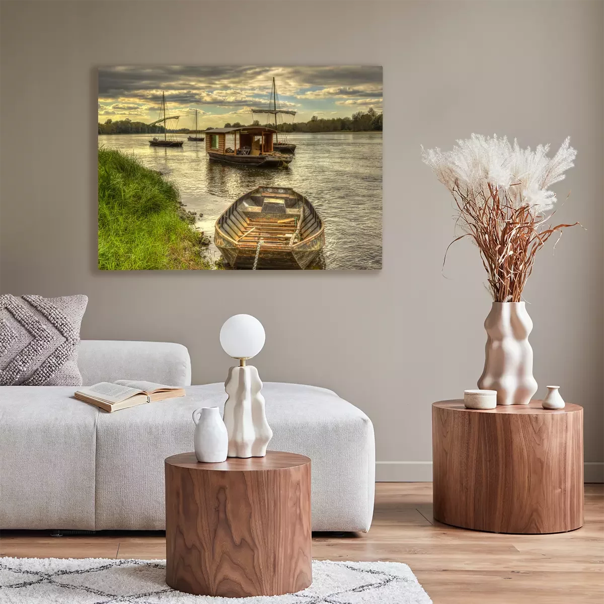 Tableau : Bateaux en bois sur la vallée de la Loire