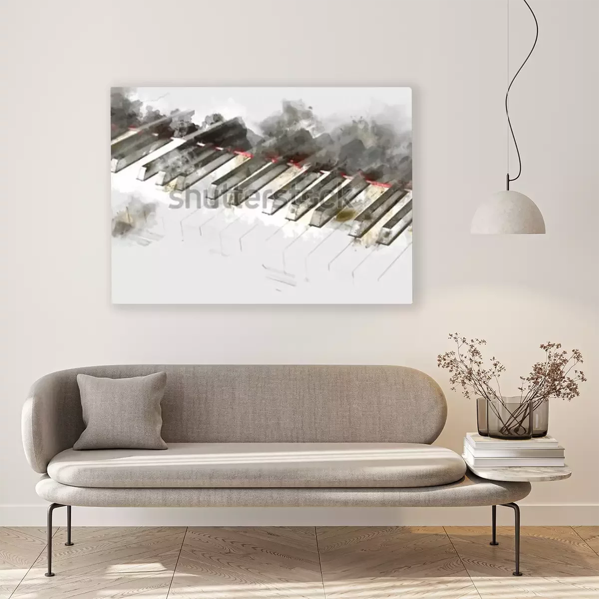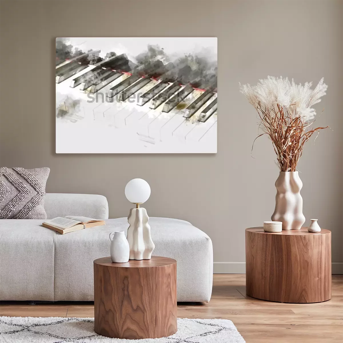 Tableau  Beau clavier de piano sur fond de peinture aquarelle. Piano Peinture à l'aquarelle numérique