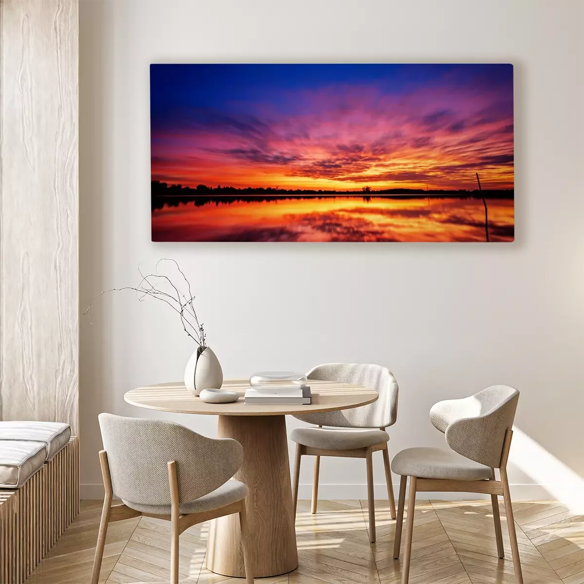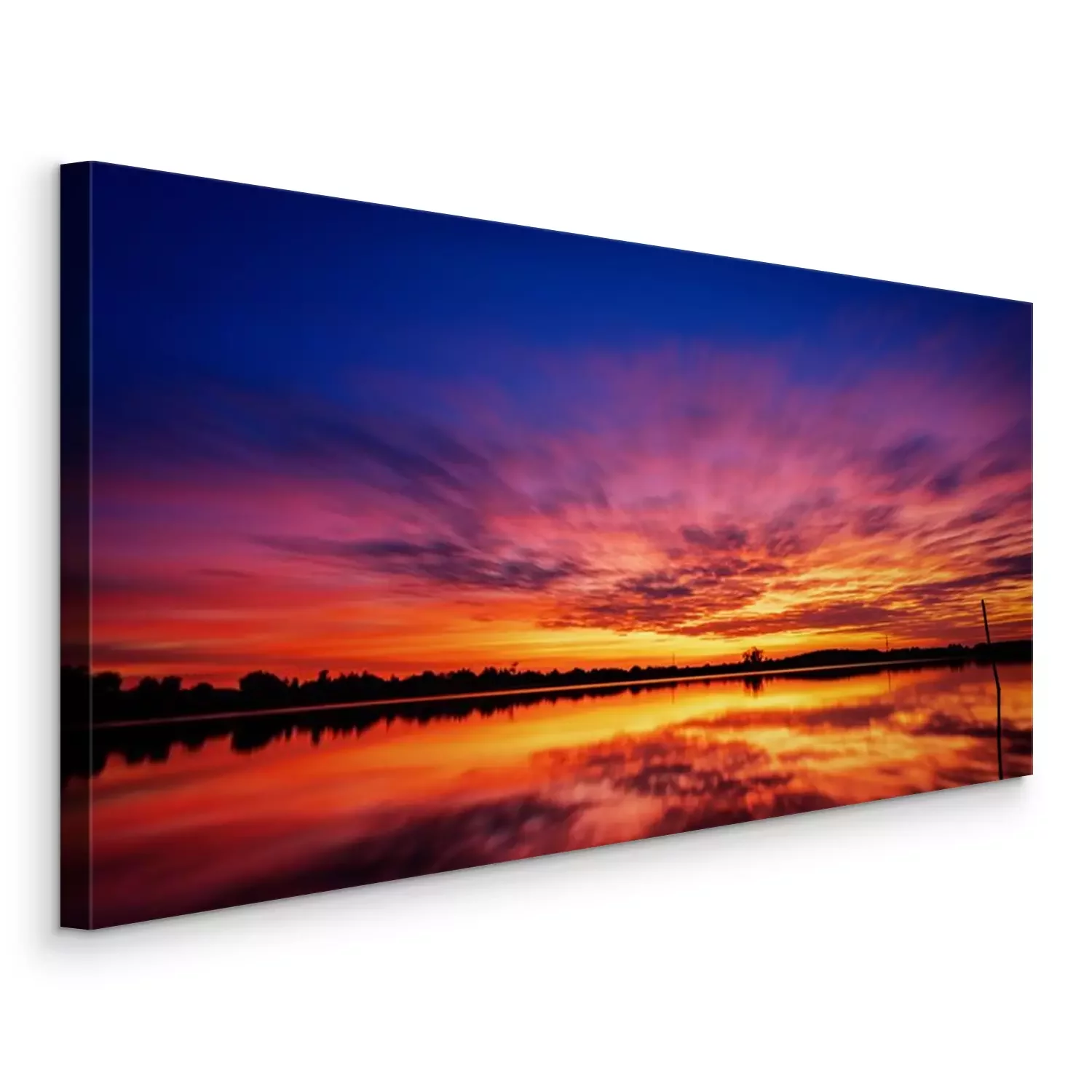 Tableau  Beau coucher de soleil ciel avec lumière dorée dramatique sur la montagne et la rivière