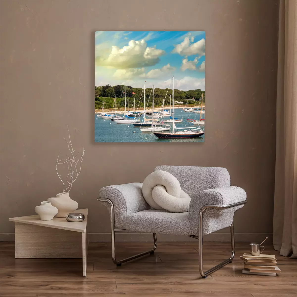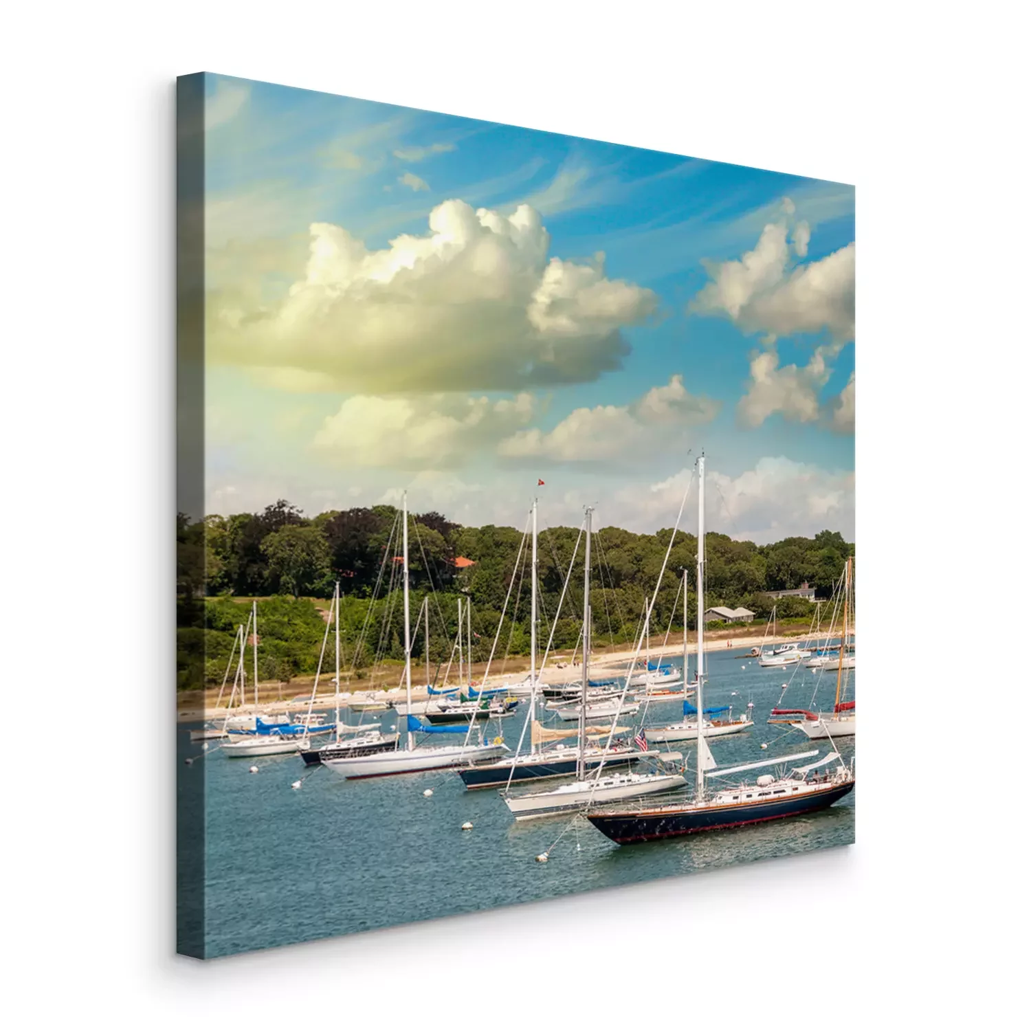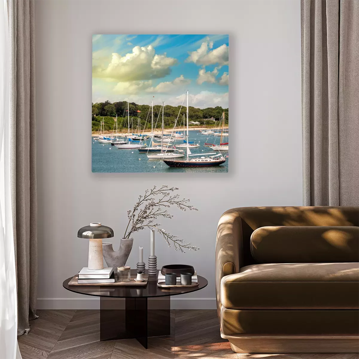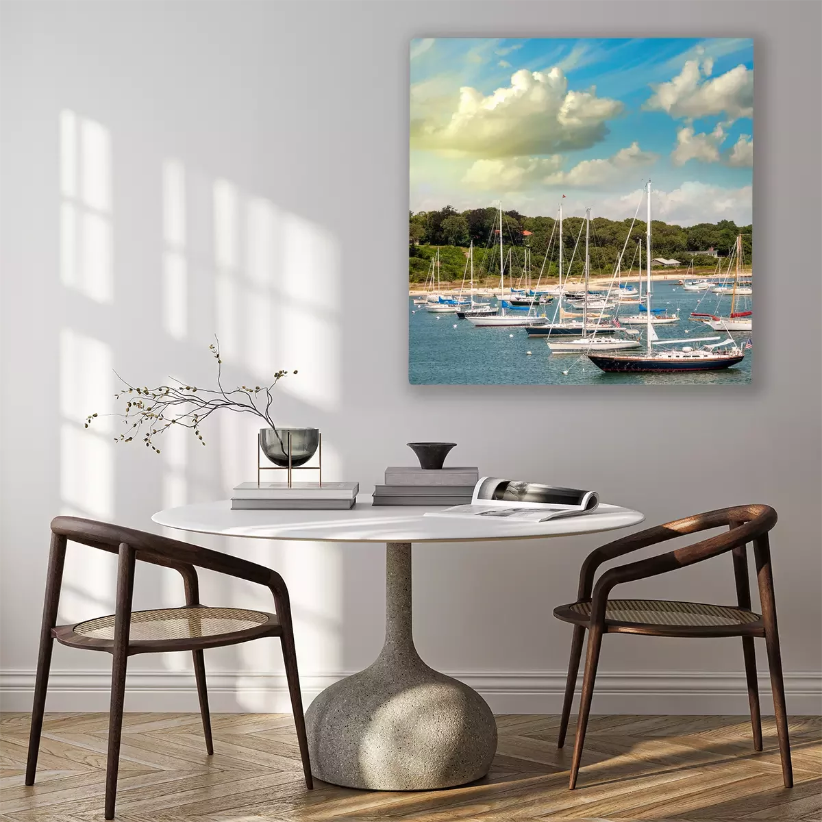 Tableau  Beau port au crépuscule avec des petits bateaux ancrés