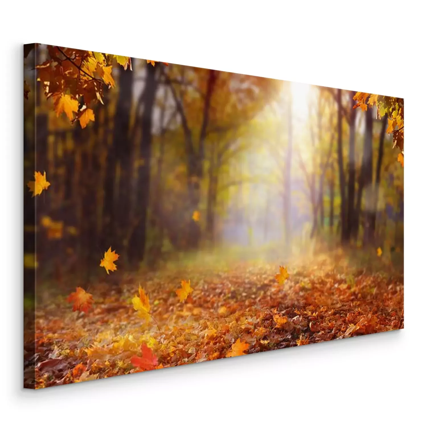 Tableau  Beautiful autumn landscape with yellow trees and sun. Colorful foliage in the park. Falling  leaves natural background .Autumn season concept