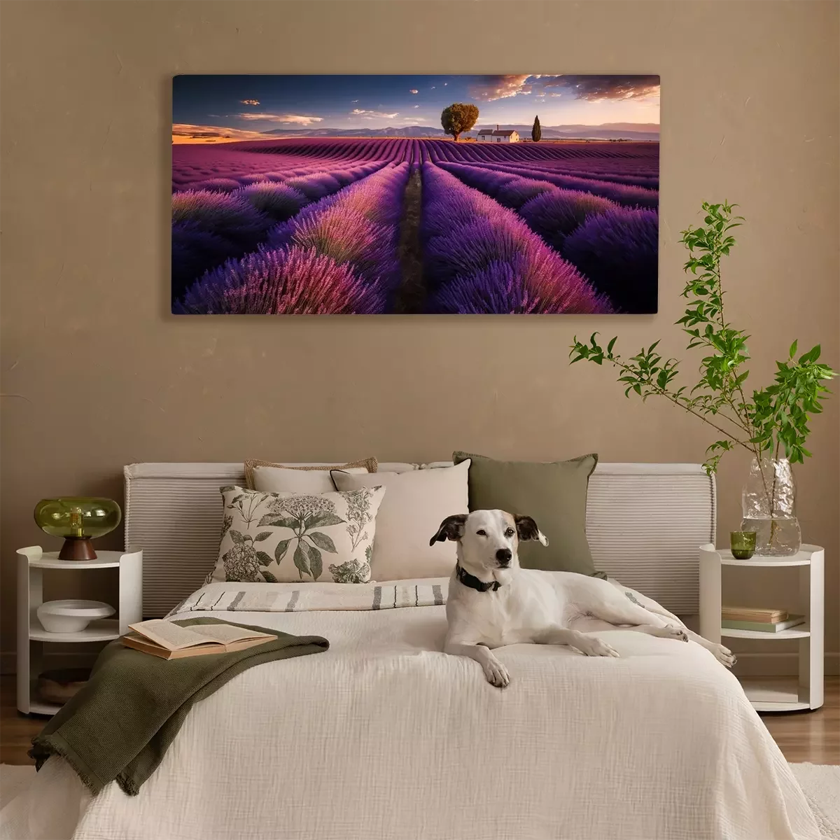Tableau : Beautiful lavender field, purple, blue sky, farm, generative ai