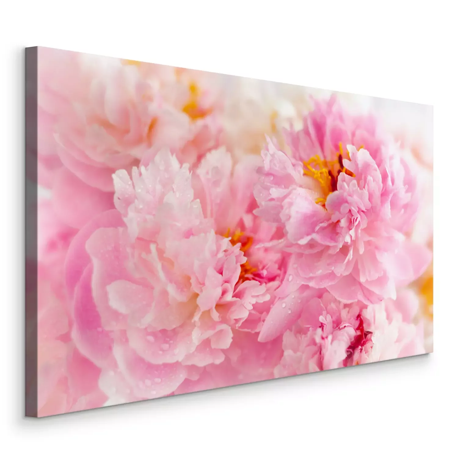 Tableau : Beautiful peony flowers close-up, macro photography, soft focus. Spring or summer floral background.