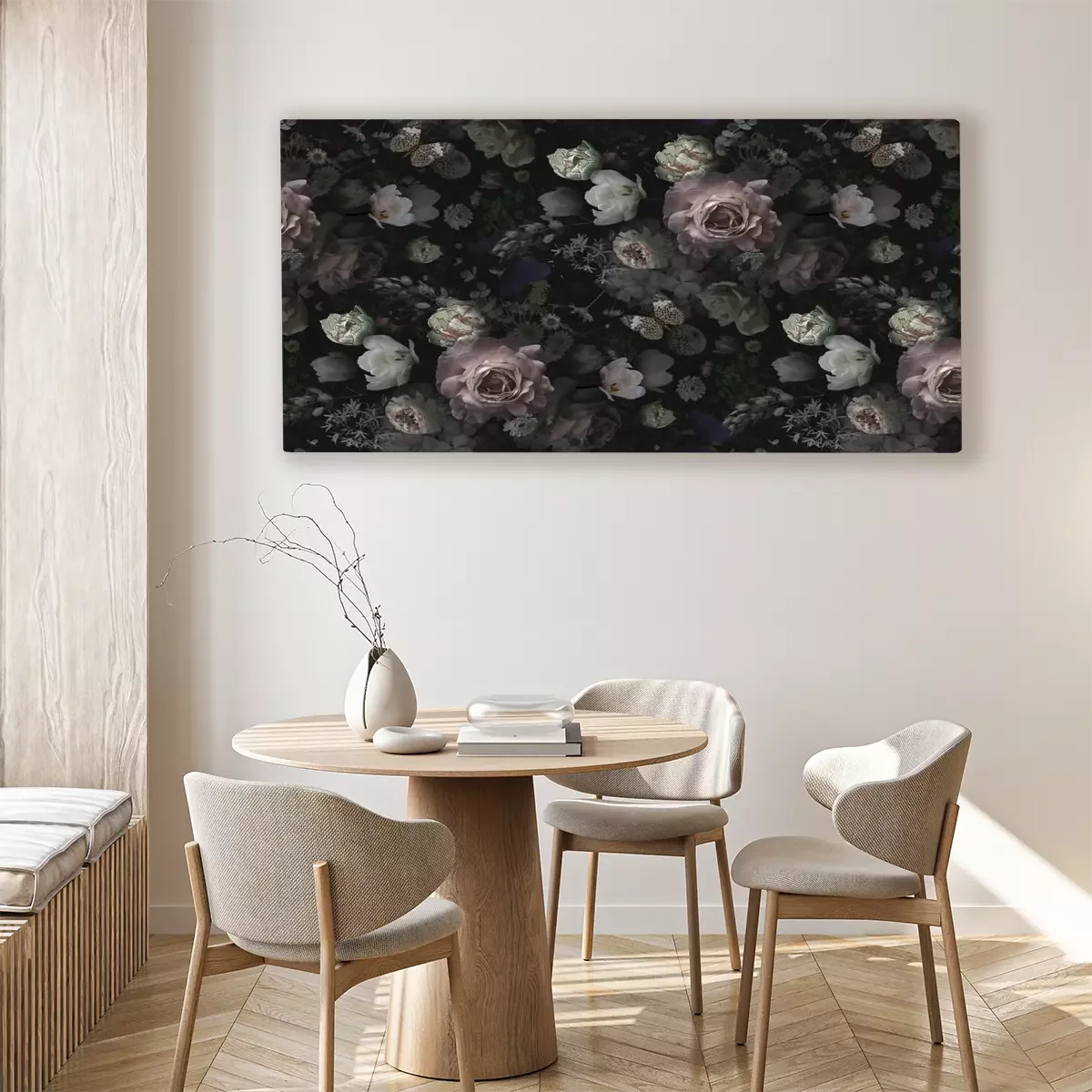 Tableau  Beautiful pink roses and garden flowers. Floral vintage seamless pattern.