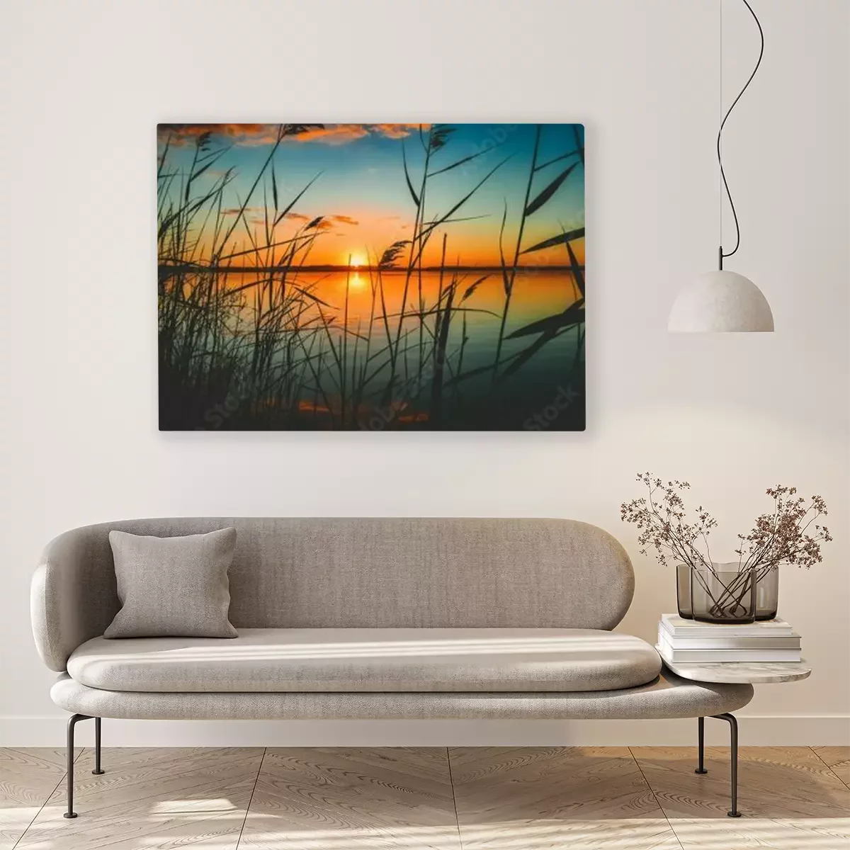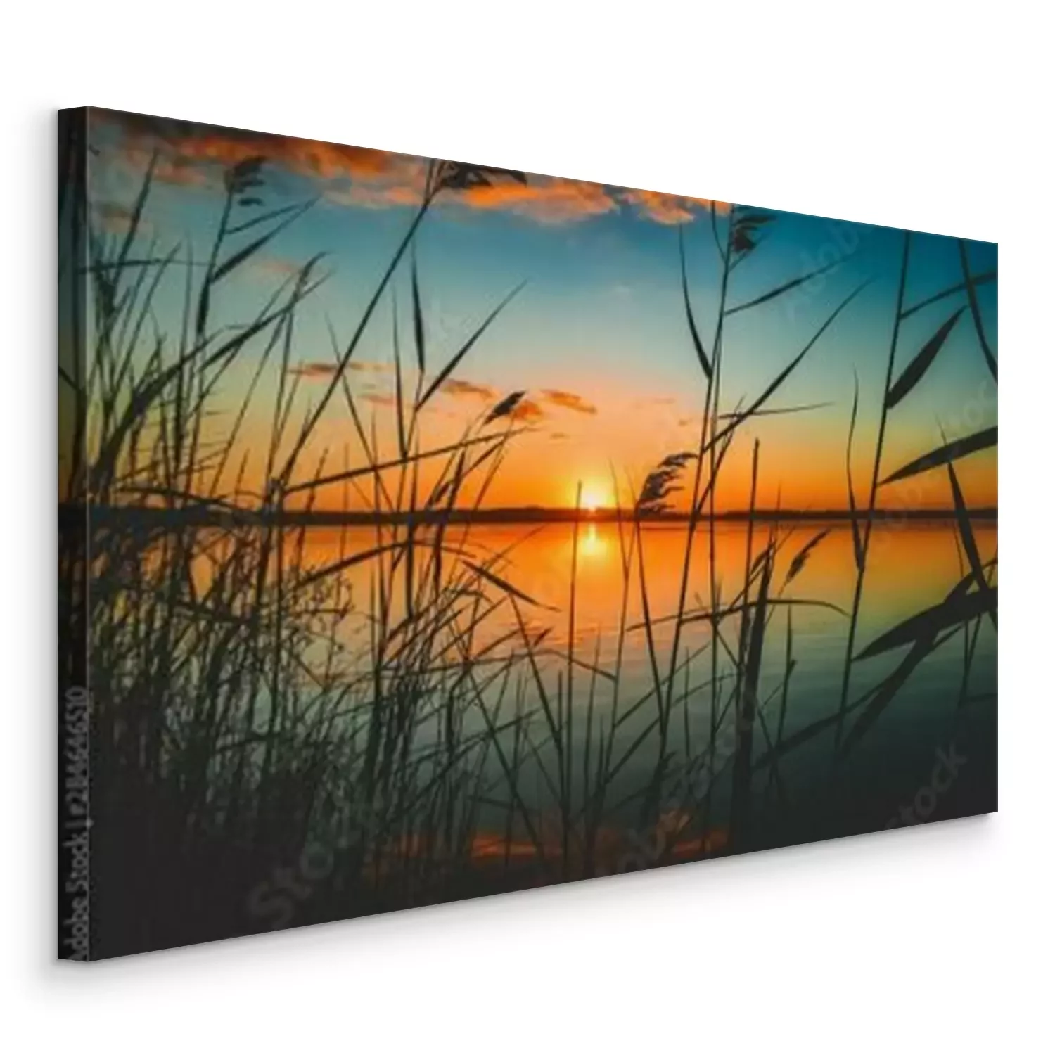 Tableau  Beautiful scenic view of the red sunset over a lake