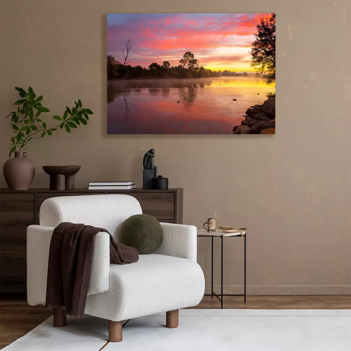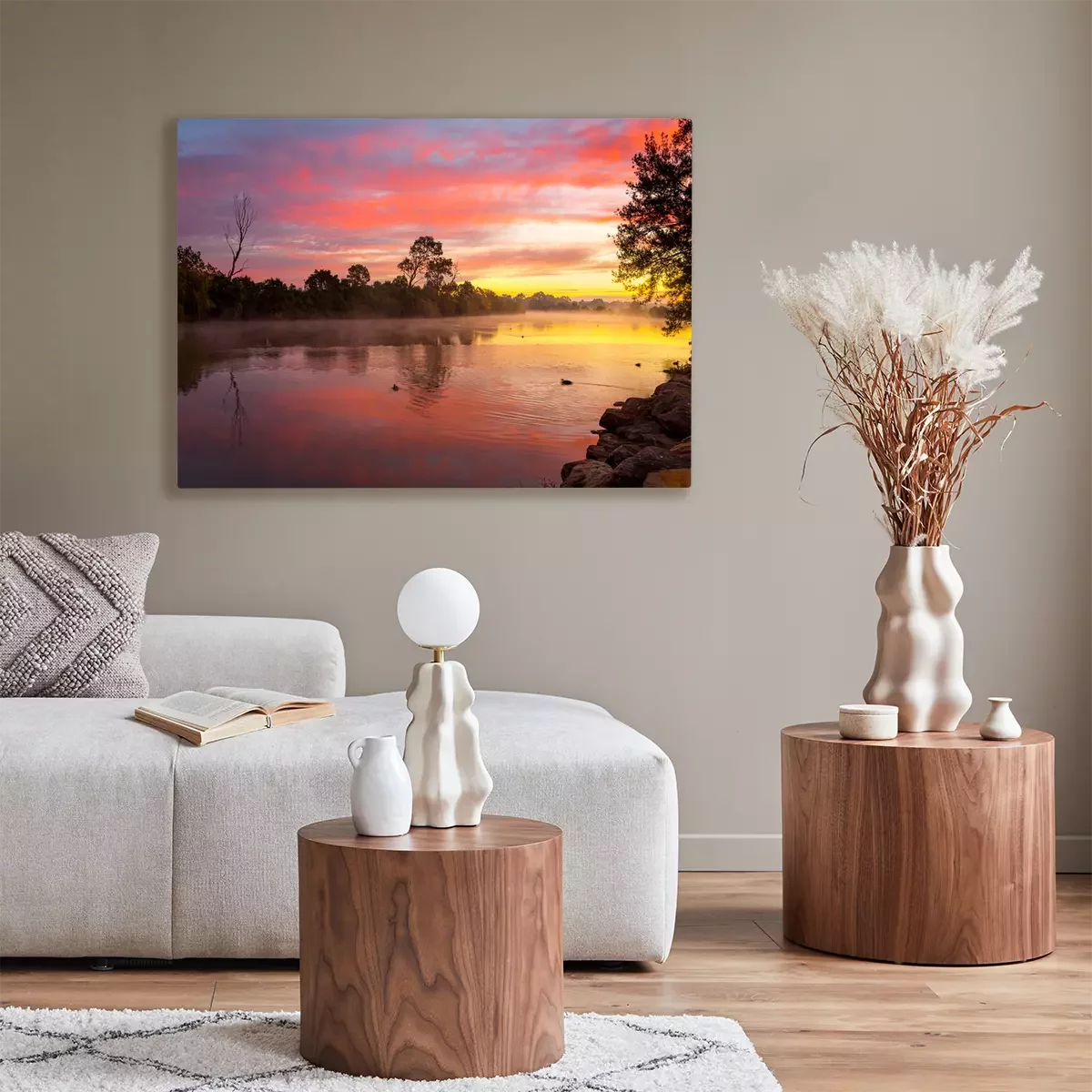 Tableau  Beautiful sunrise over the billabong with a light ground fog