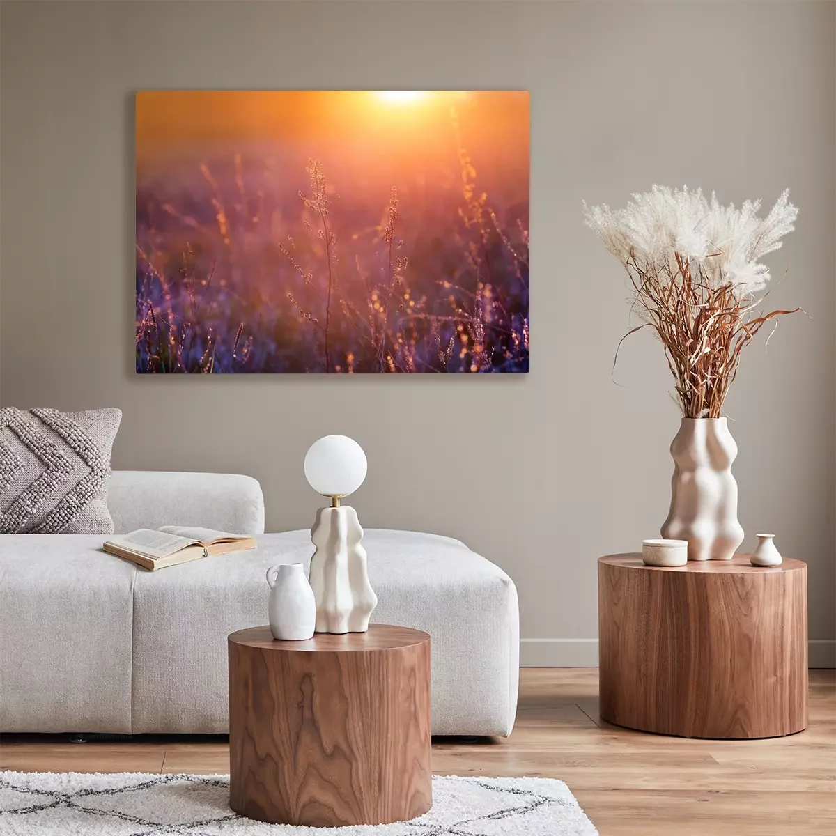 Tableau : Beautiful sunset over the meadow