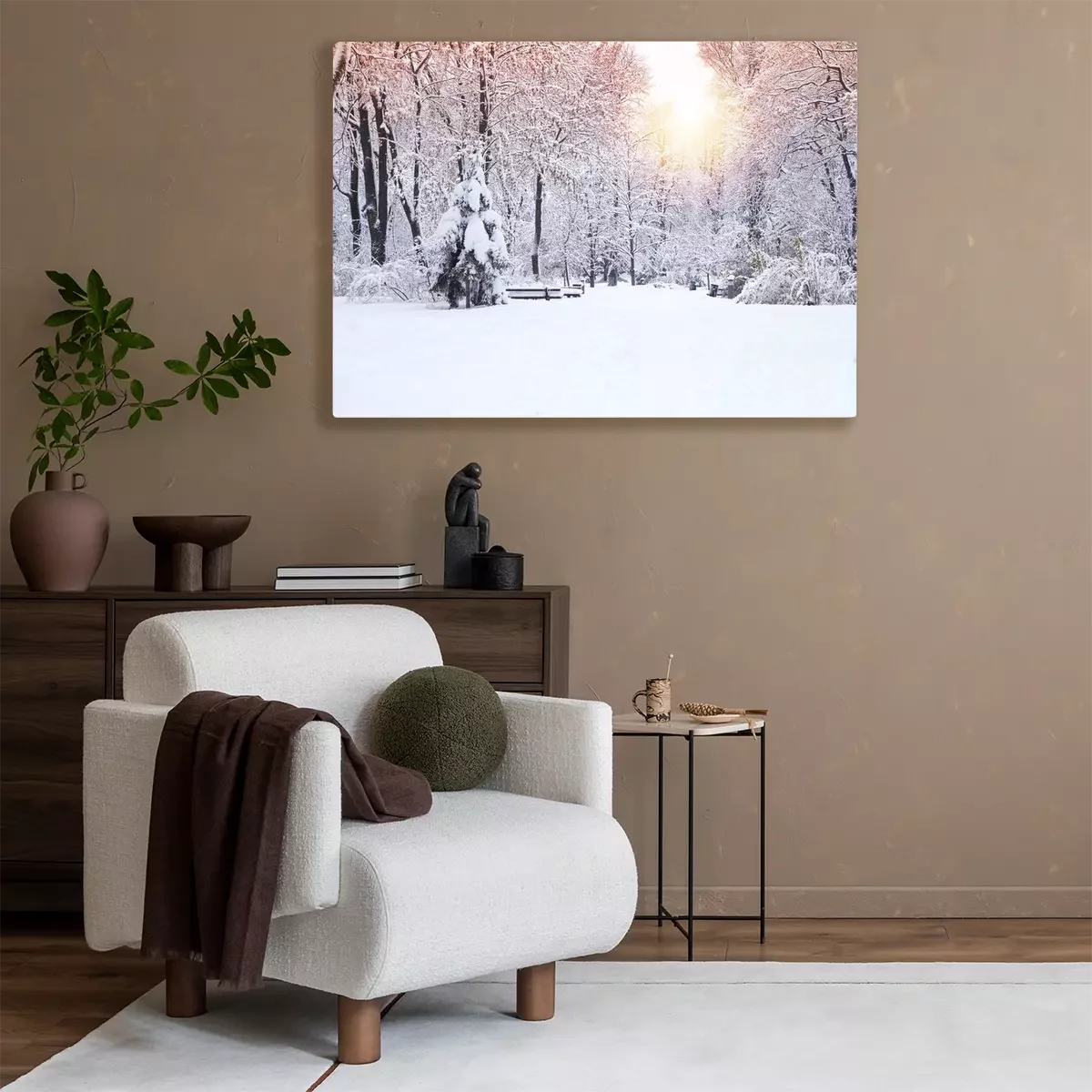Tableau : Beautiful winter park, trees covered with snow. Winter landscape