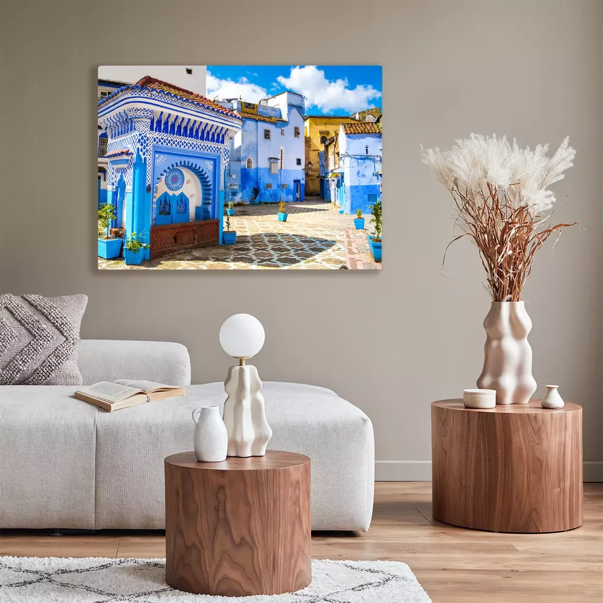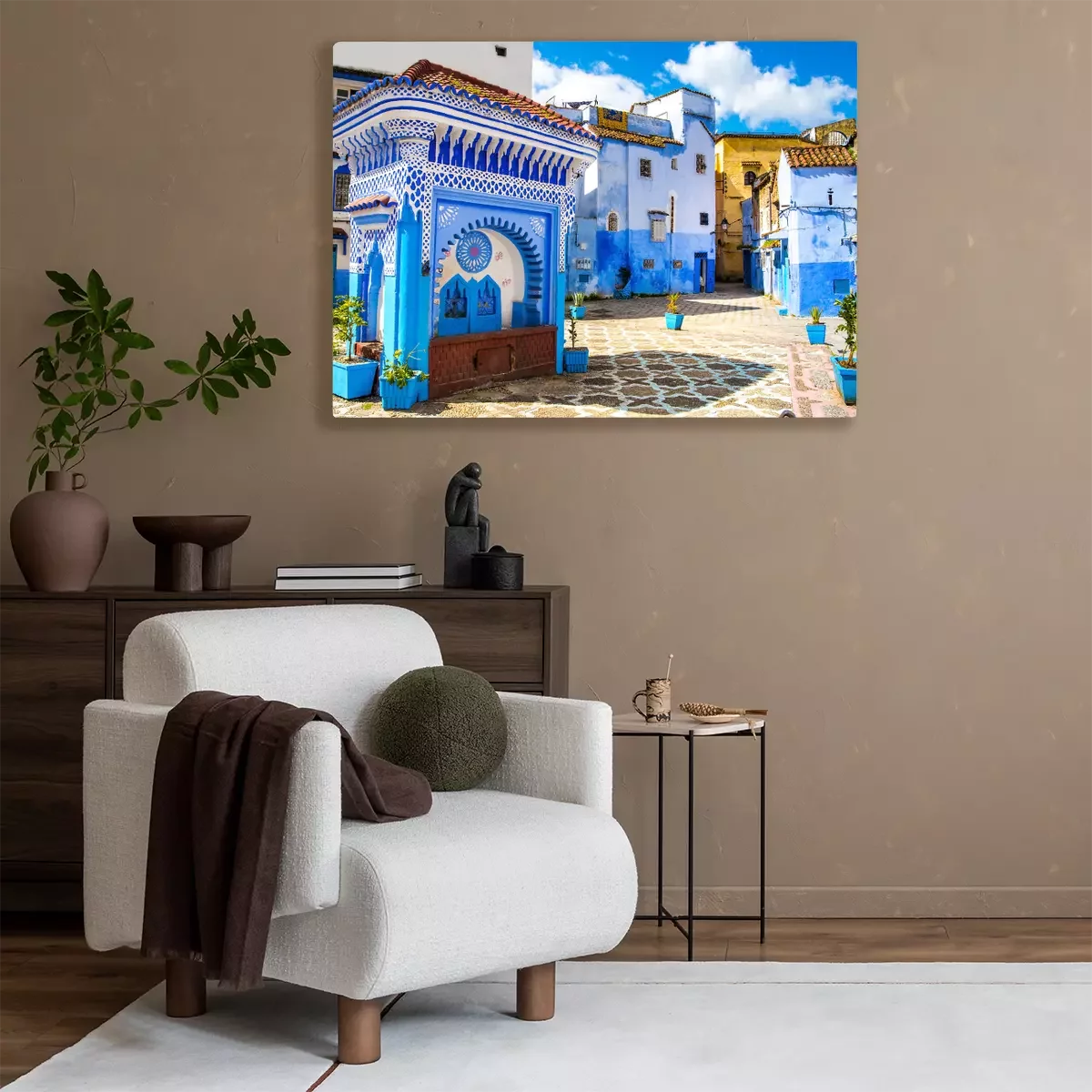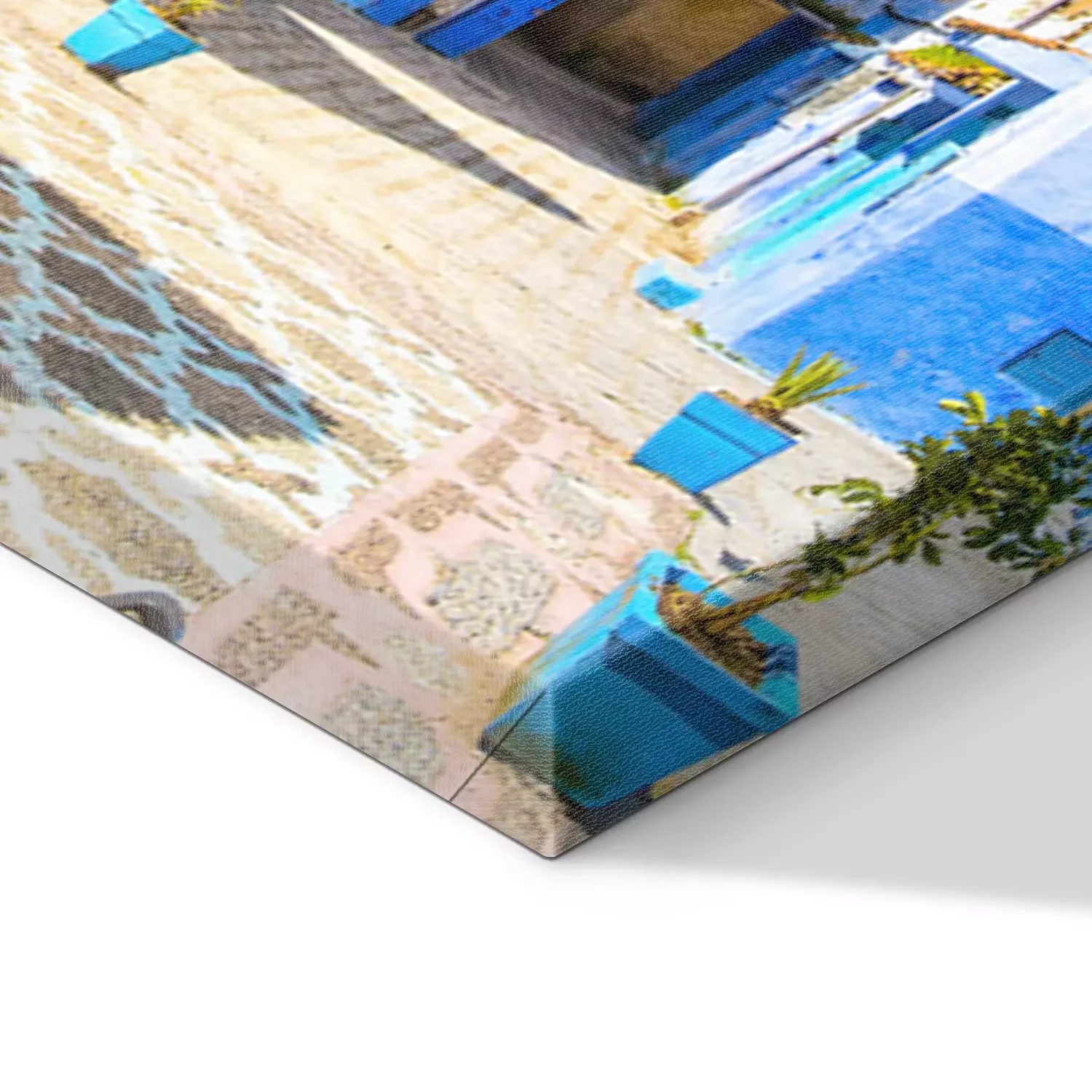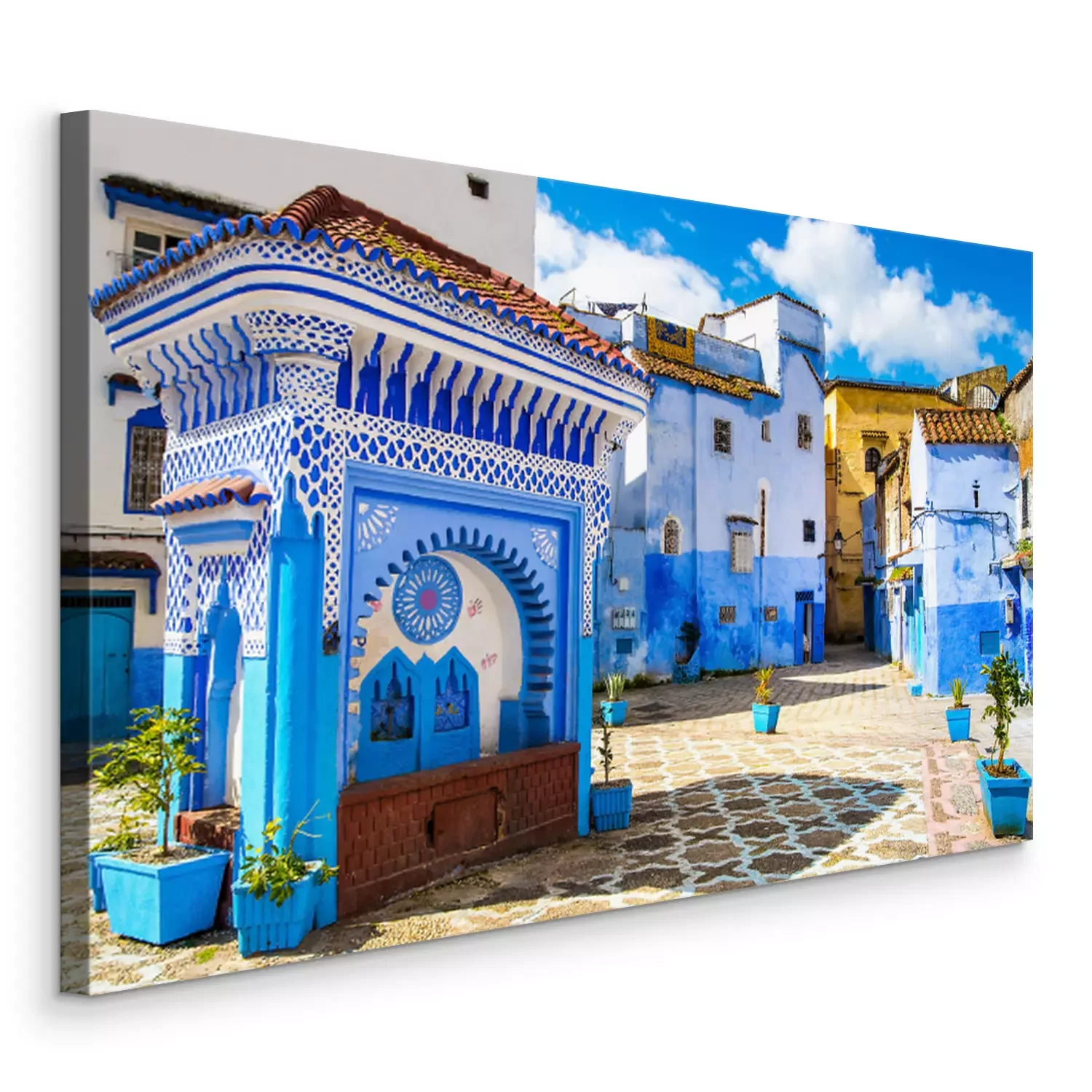 Tableau  Belle vue sur la place dans la ville bleue de Chefchaouen. Lieu: Chefchaouen, Maroc, Afrique. Image artistique. Monde de beauté