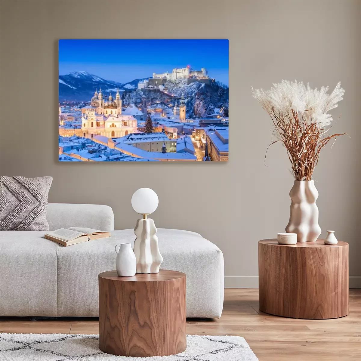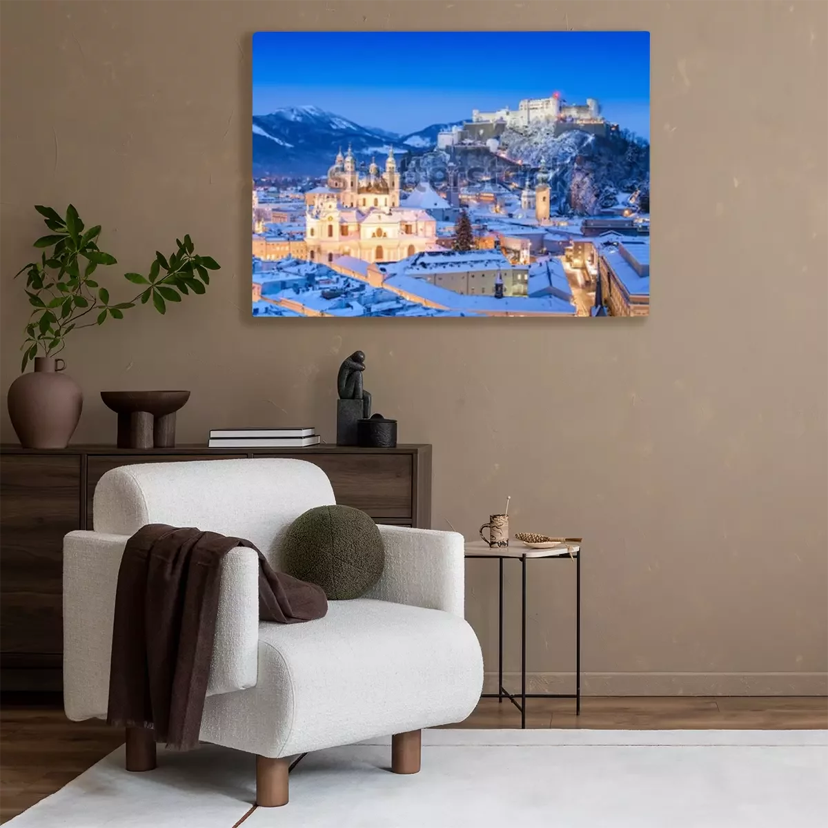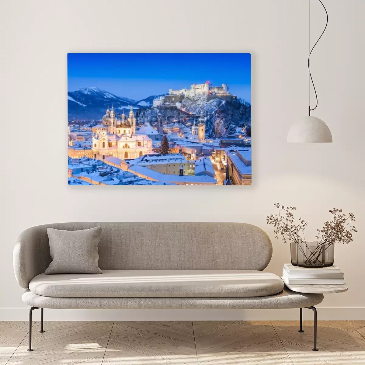 Tableau  Belle vue sur la ville historique de Salzbourg avec le festival Hohensalzburg en hiver, Salzbourg, Autriche