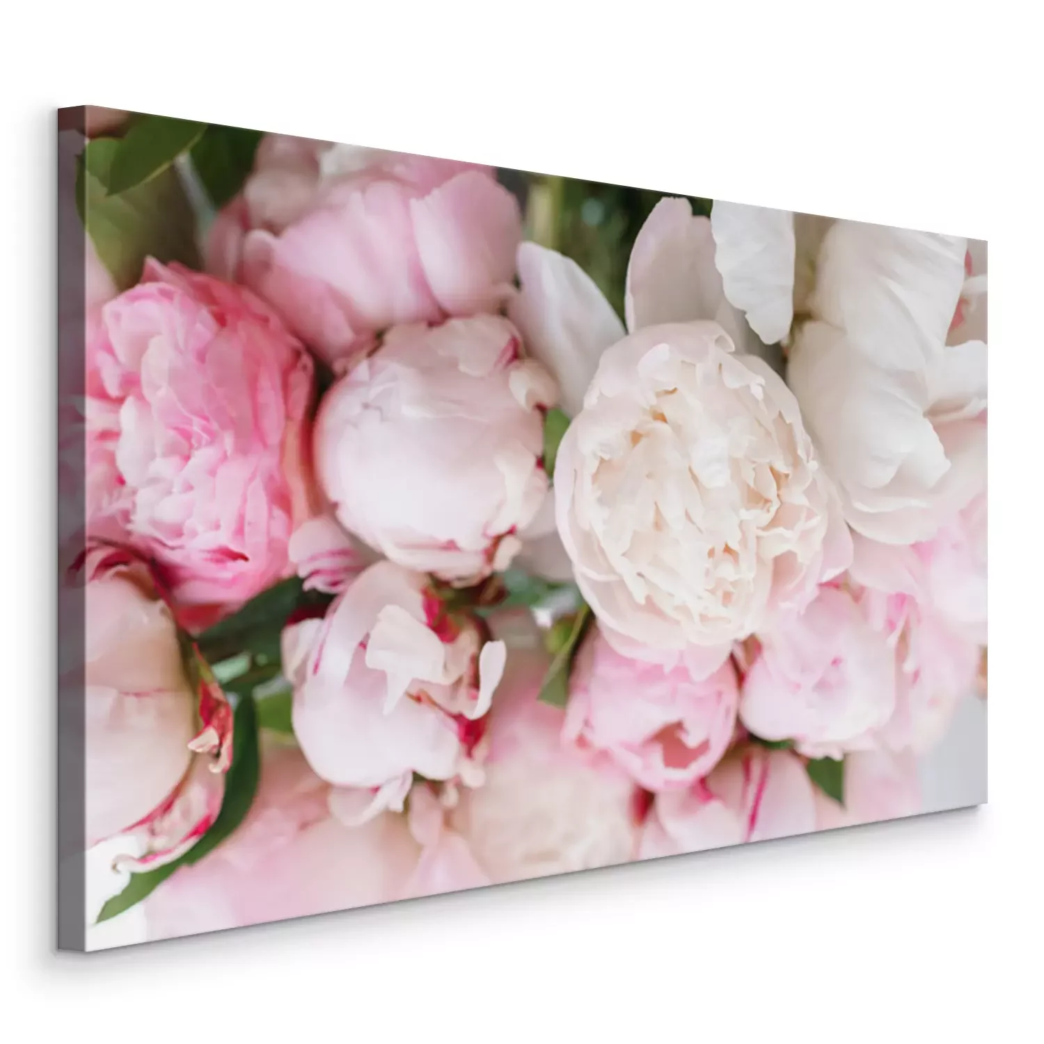 Tableau  Belles fleurs dans un vase en verre. Beau bouquet de pivoines blanches et roses. Composition florale, lumière du jour. Fond d'écran d'été. Couleurs pastel