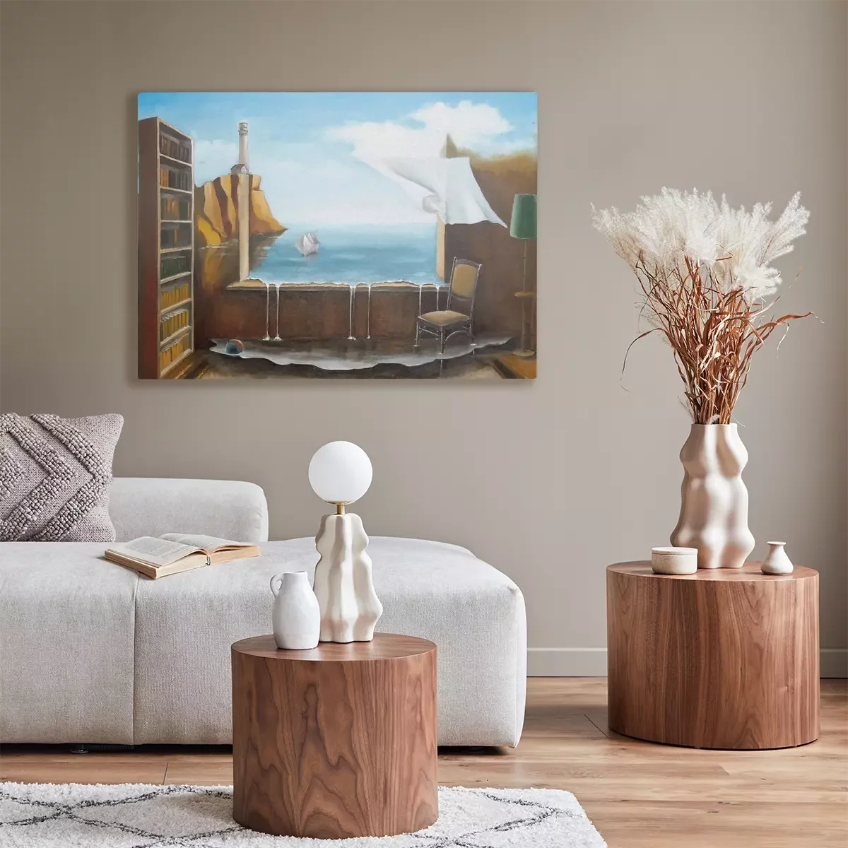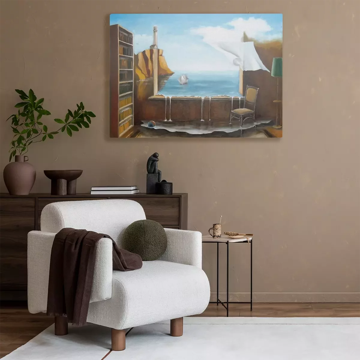 Bibliothèque à flanc de falaise, salle ouverte sur l'eau