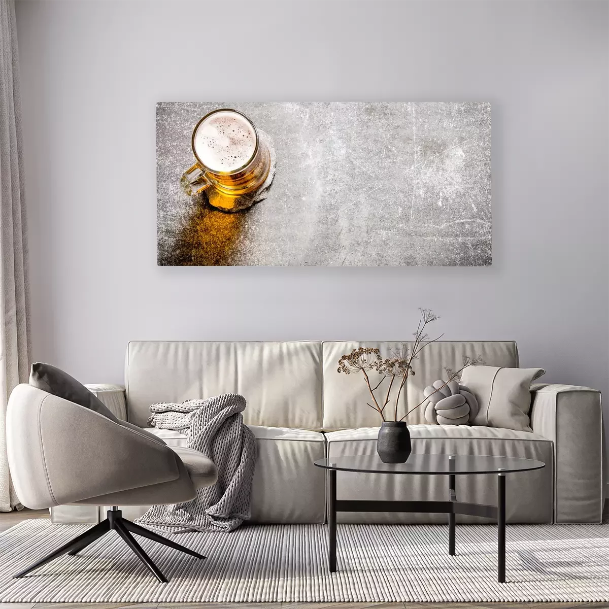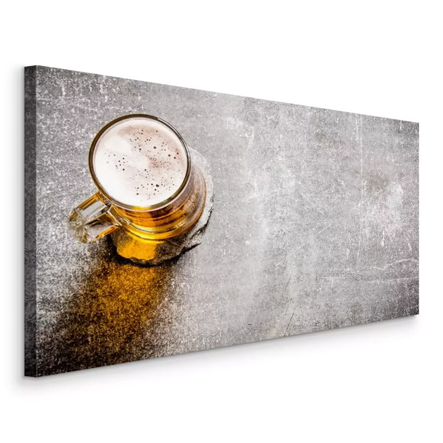 Tableau : Bière dans un verre sur la surface de pierre ancienne.