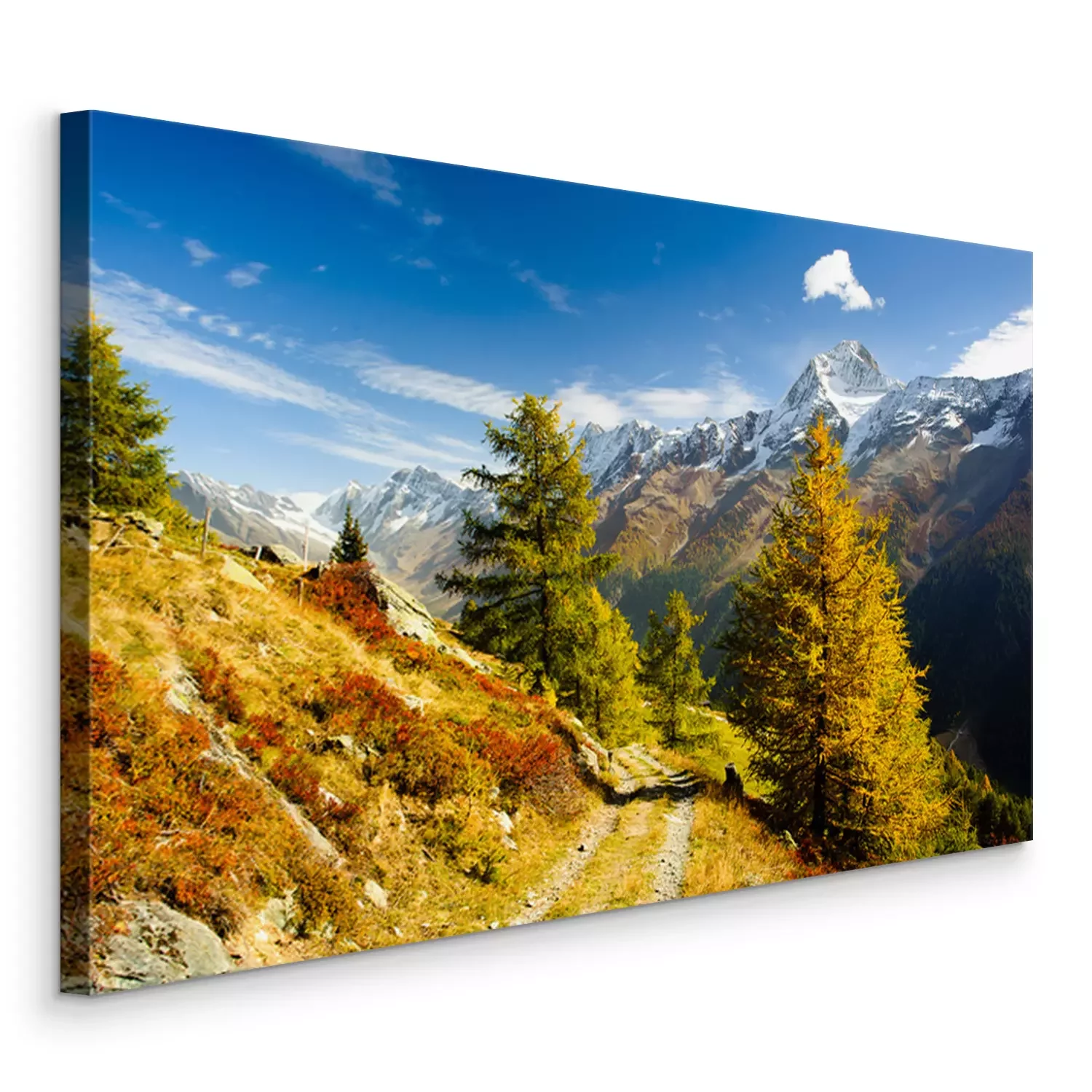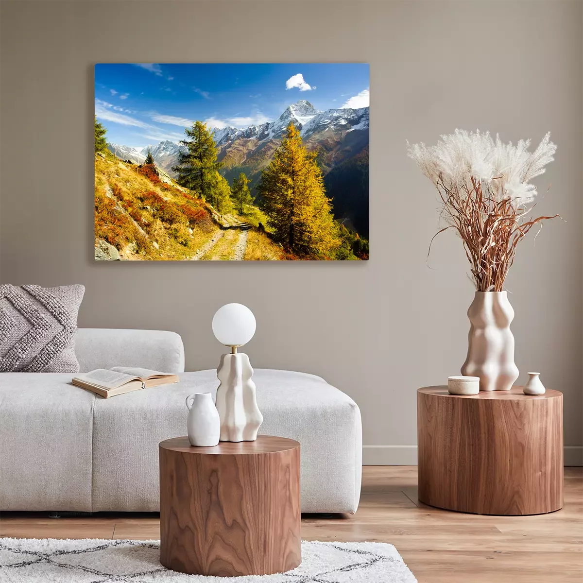 Tableau  Bietschorn sommet de montagne en automne avec sentier de randonnée