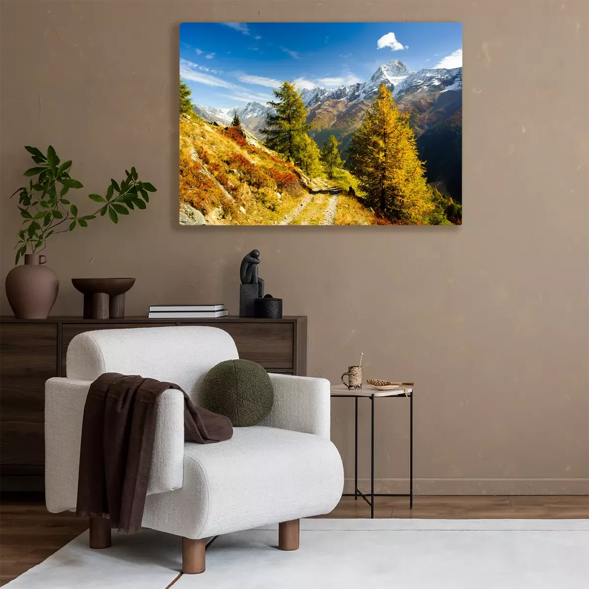 Tableau : Bietschorn sommet de montagne en automne avec sentier de randonnée