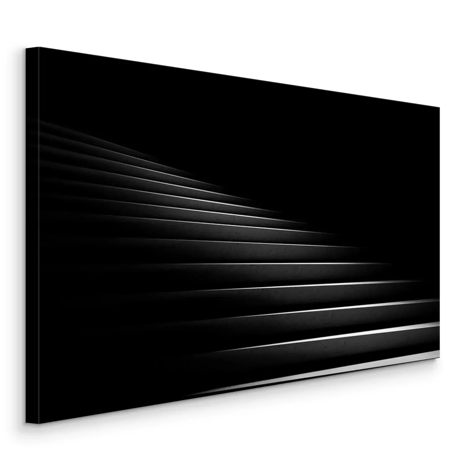 Tableau  Black background. Stone stairs with abstract light. Steps in the darkness. 3D rendering