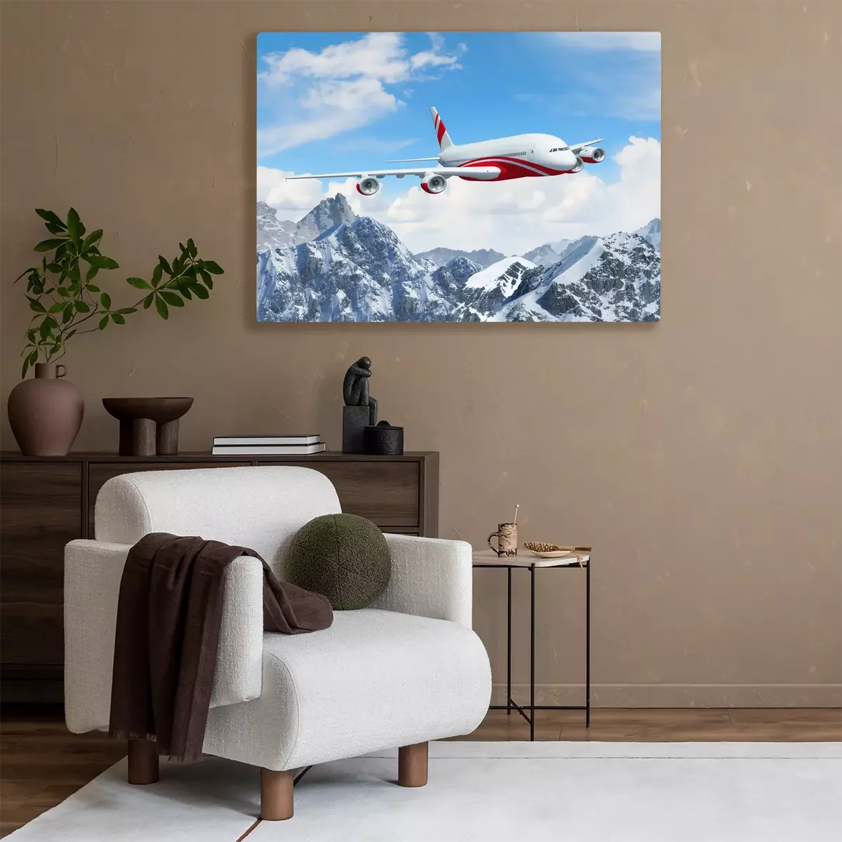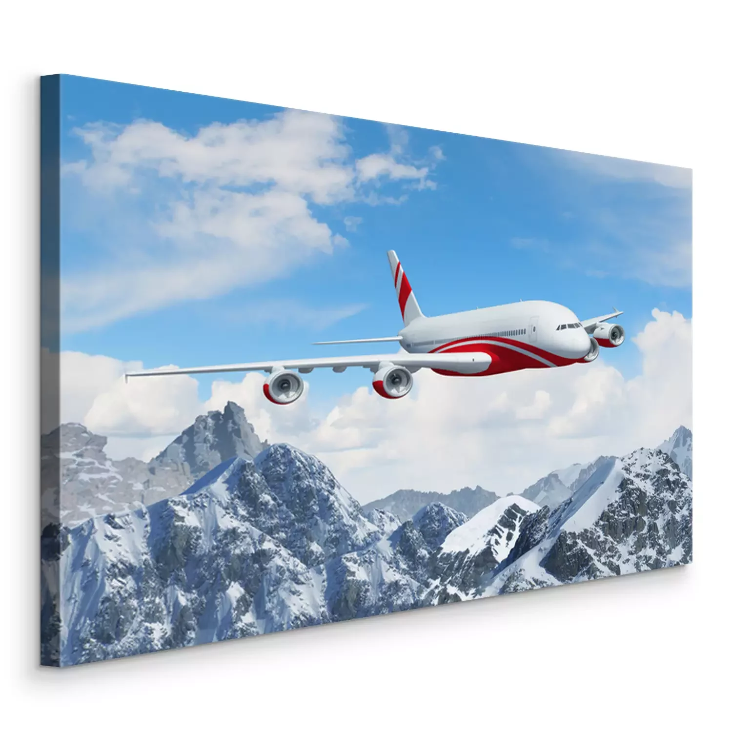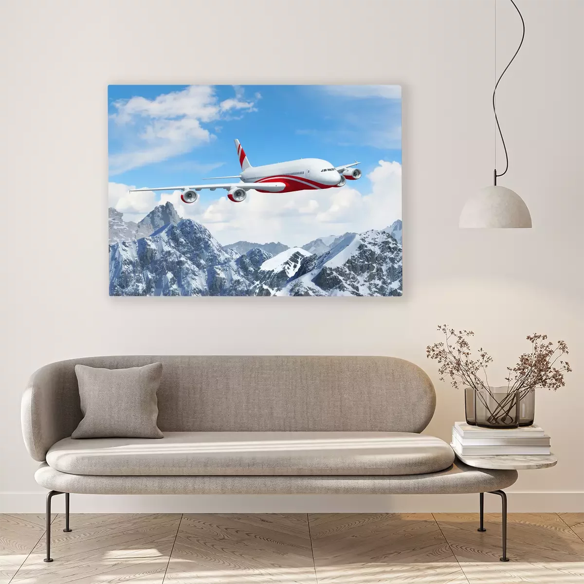 Tableau  Blanc avion de passagers au-dessus des montagnes