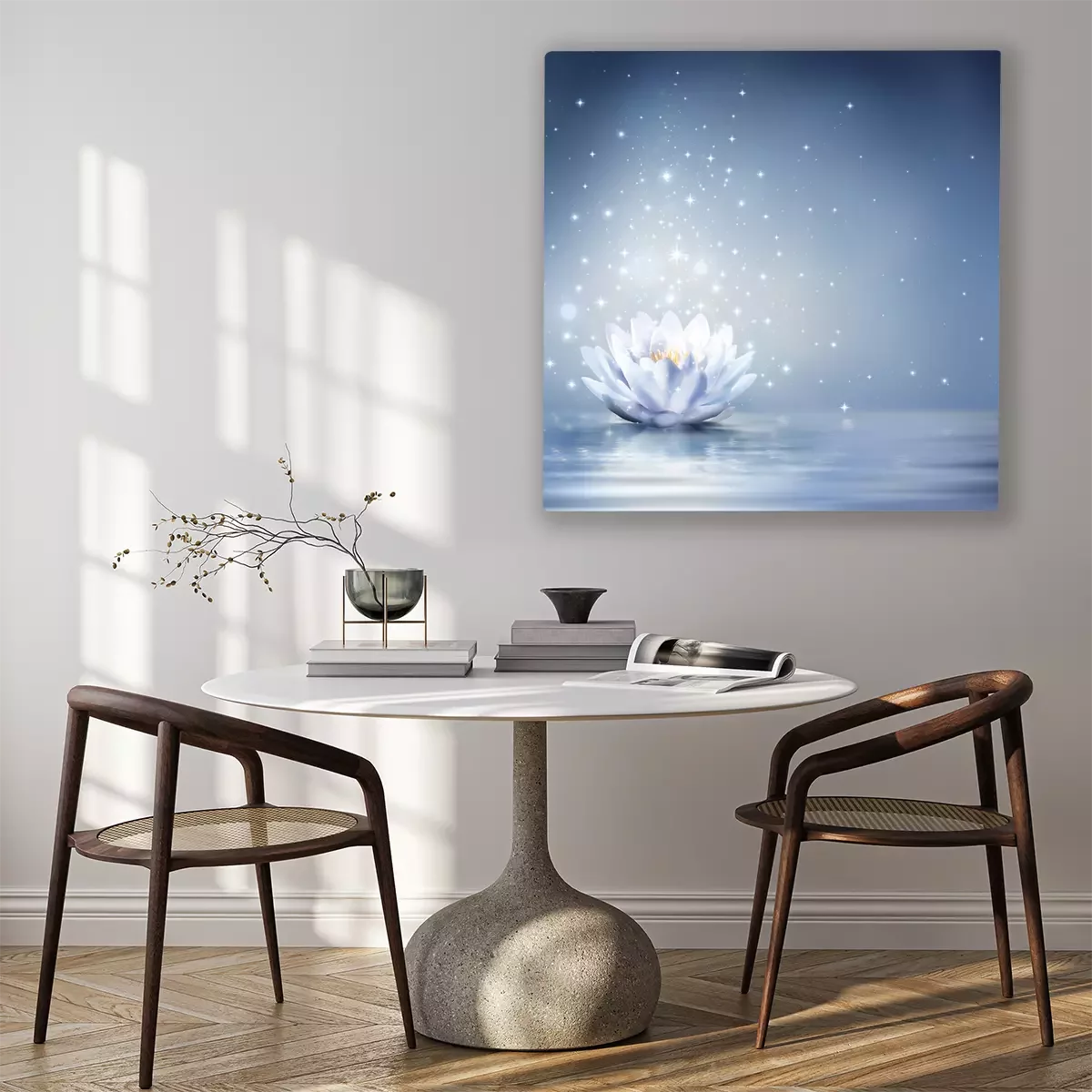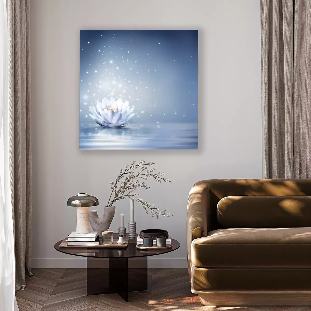 Tableau  bleu nénuphar lumière sur l'eau - fond de conte de fées