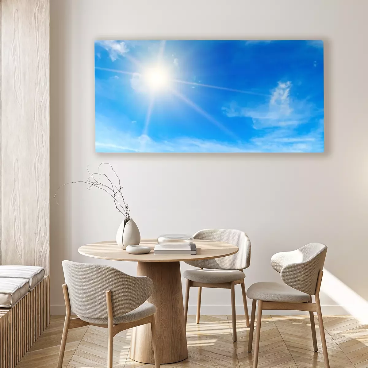 Tableau  Blue sky. Bright midday sun illuminates the space. Wide photo .