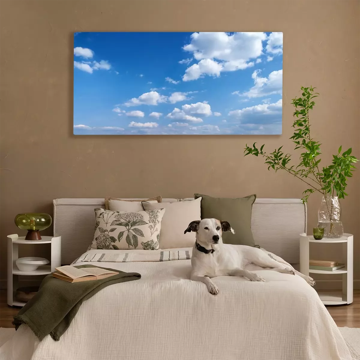 Tableau  Blue sky with white clouds. Blue sky background with clouds.