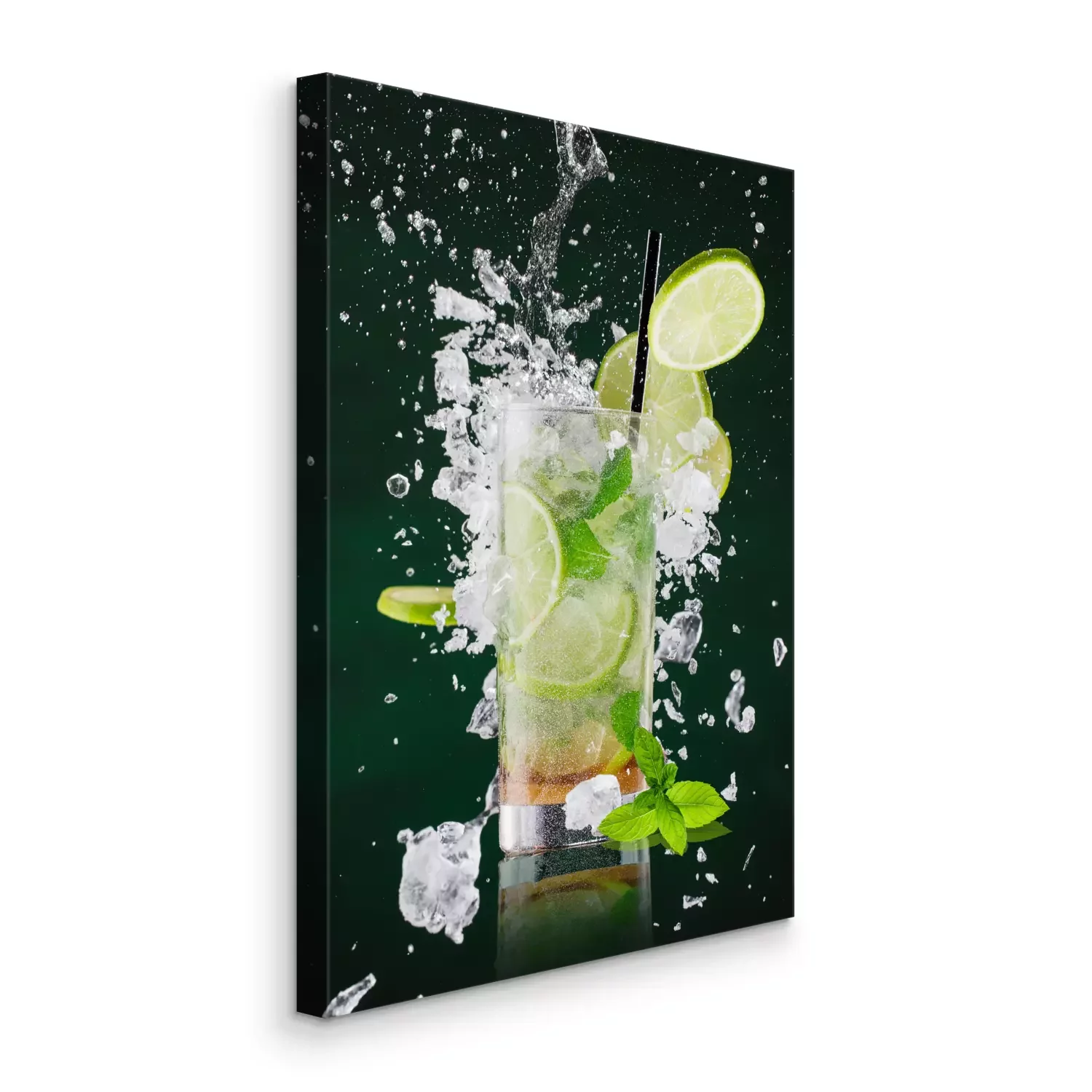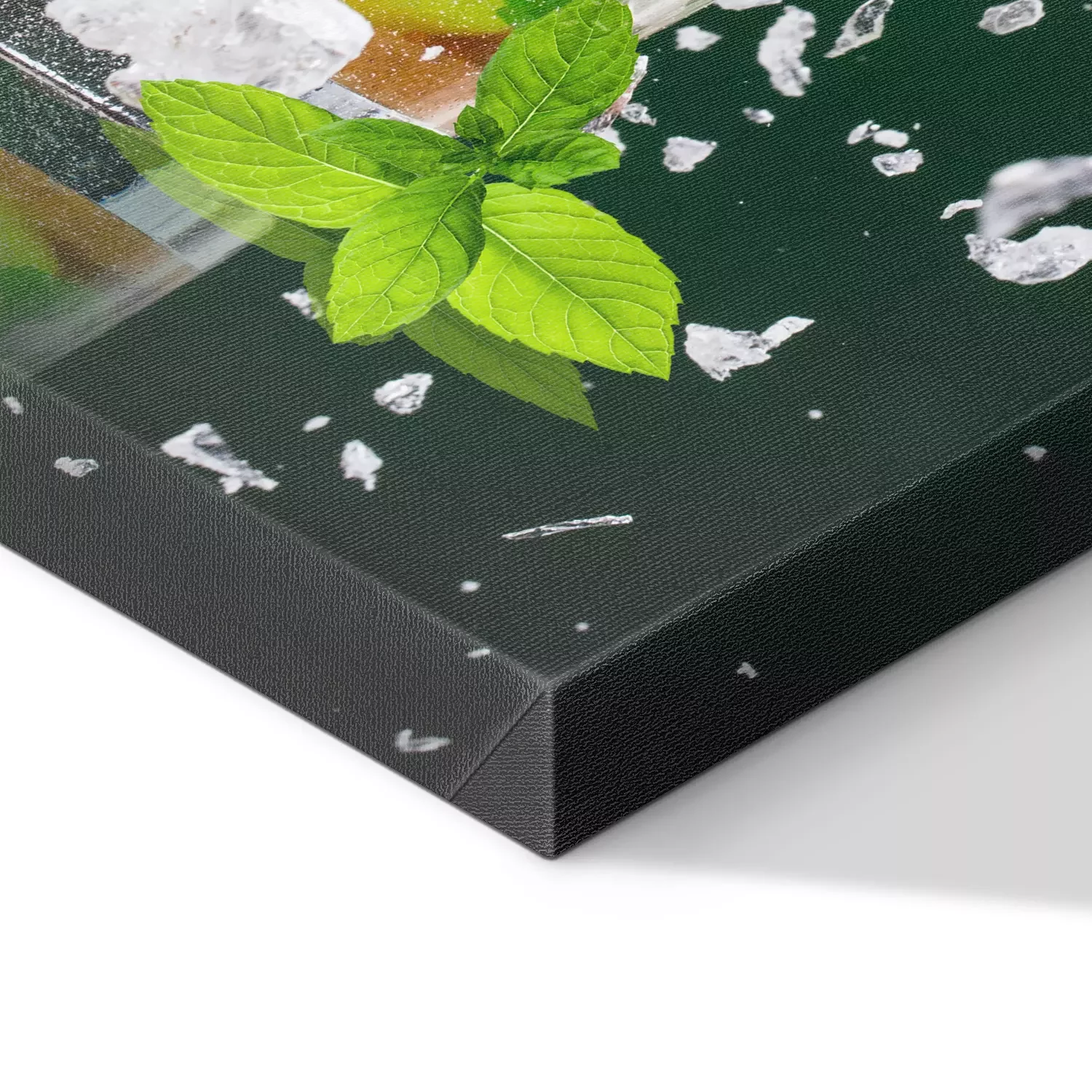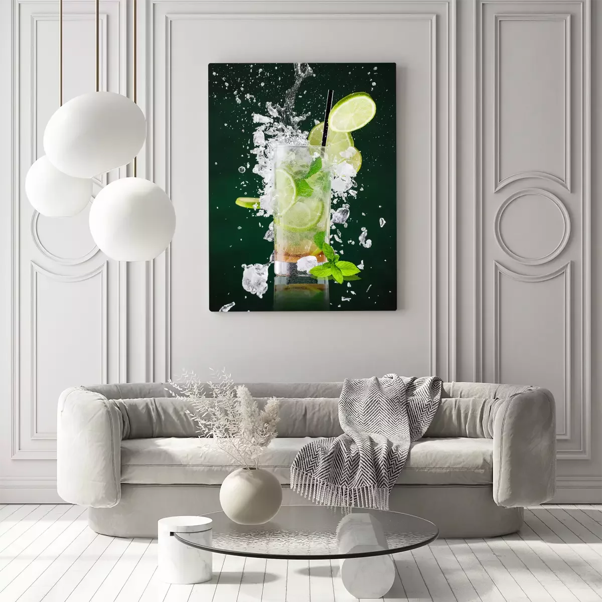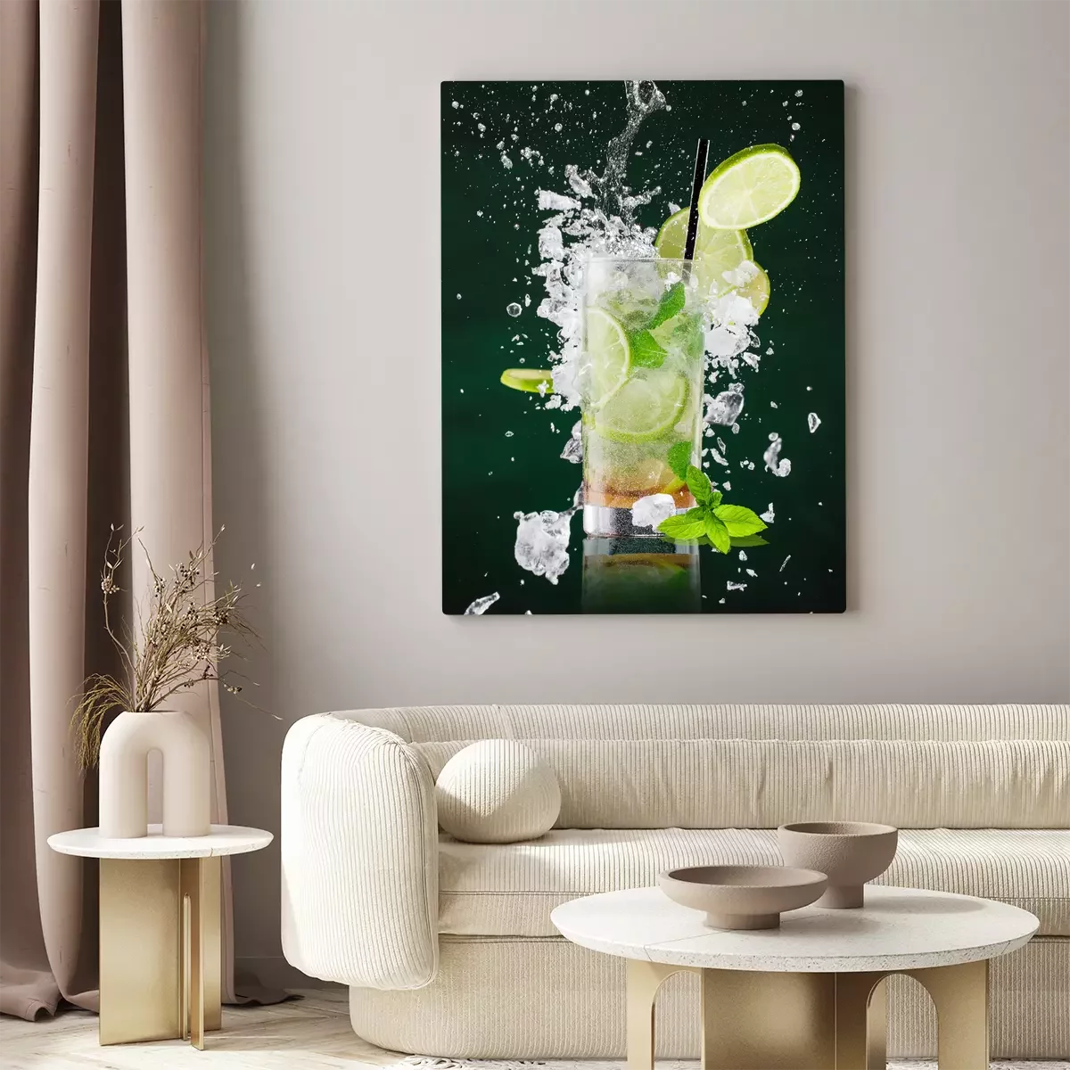 Tableau : Boisson mojito fraîche avec des éclaboussures de liquide et de la glace pilée dans le mouvement de gel